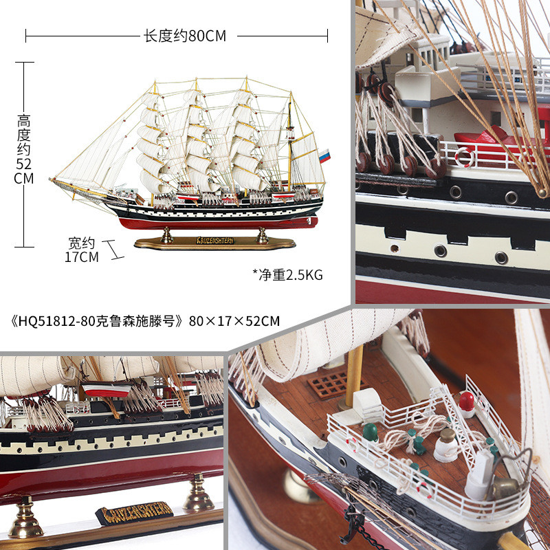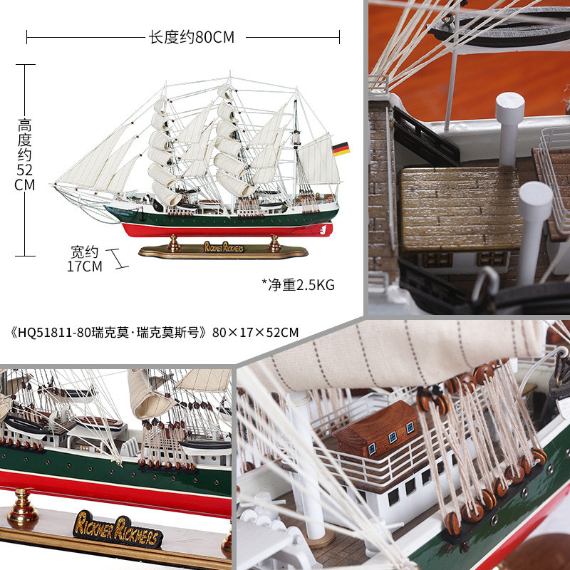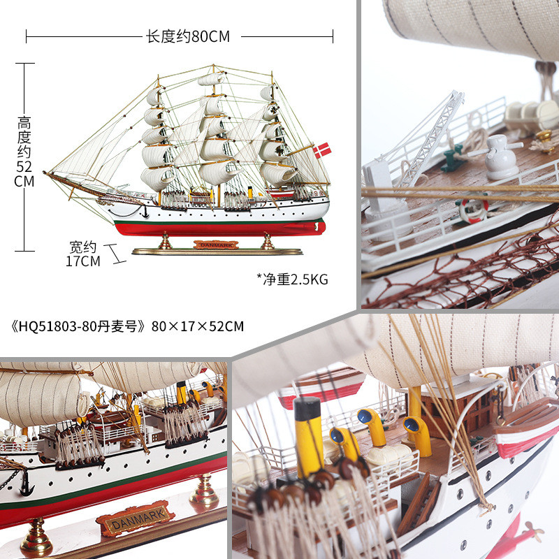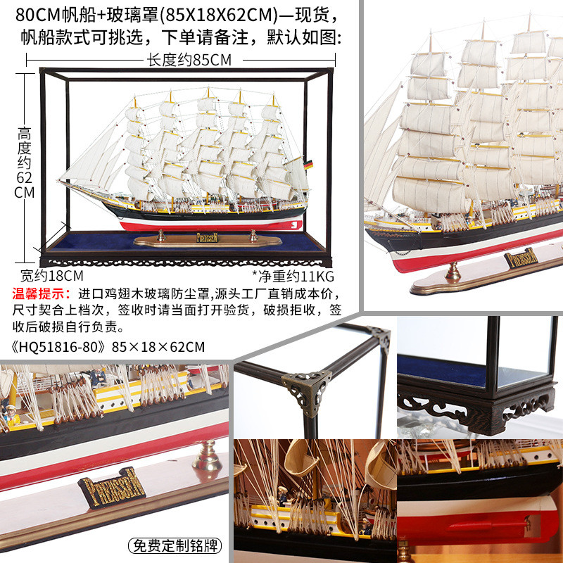 批发精品80cm实木帆船模型一帆风顺工艺船乔迁玄关装饰摆件开业