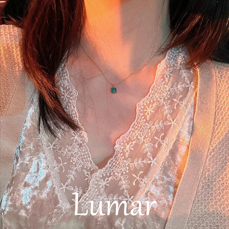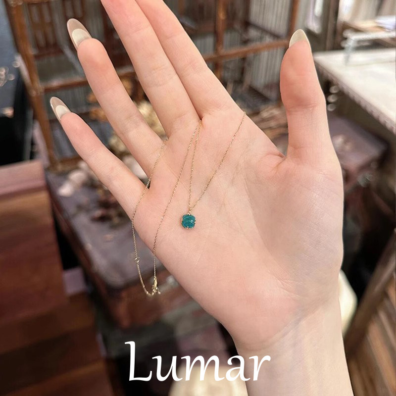 S925纯银小方块绿松石吊坠项链女款2026新款爆款高级感气质锁骨链