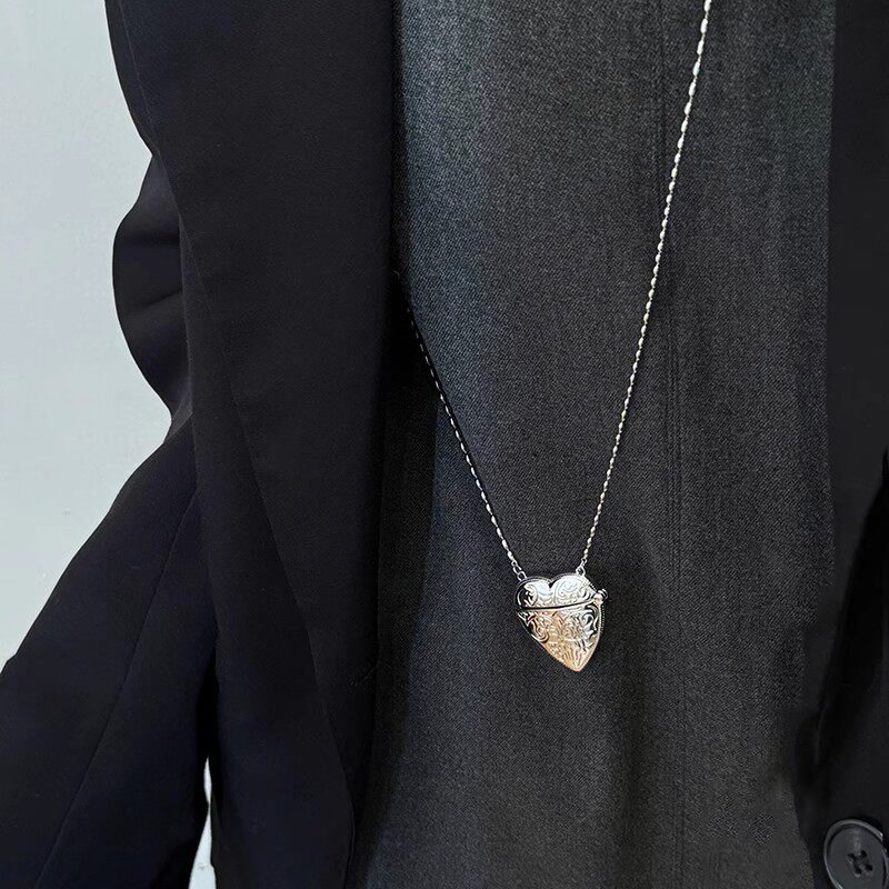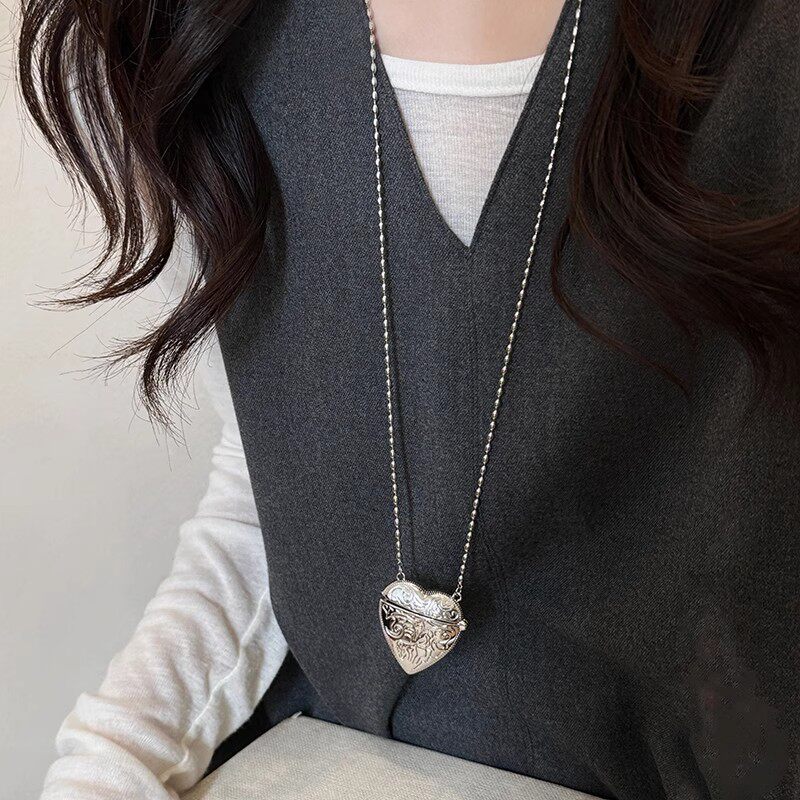 韩系爱心小包项链女小众设计高级感斜挎链秋冬复古长款桃心毛衣链