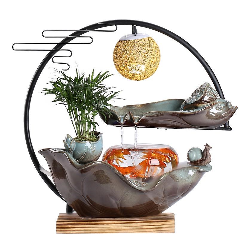 流水喷泉创意家居招财桌面客厅办公室装饰品领导长辈送礼陶瓷摆件