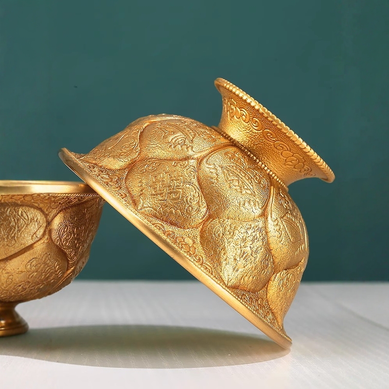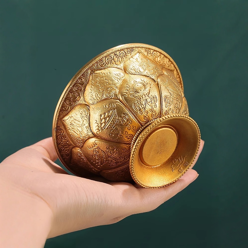 王师兄西藏式纯铜供水杯子慧宝八吉祥圣水杯莲花供佛供水碗大小号