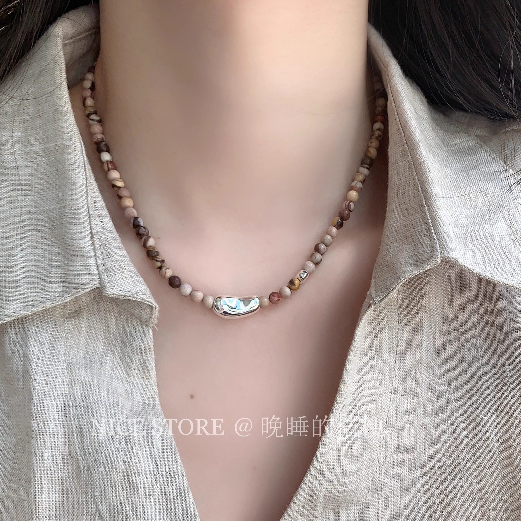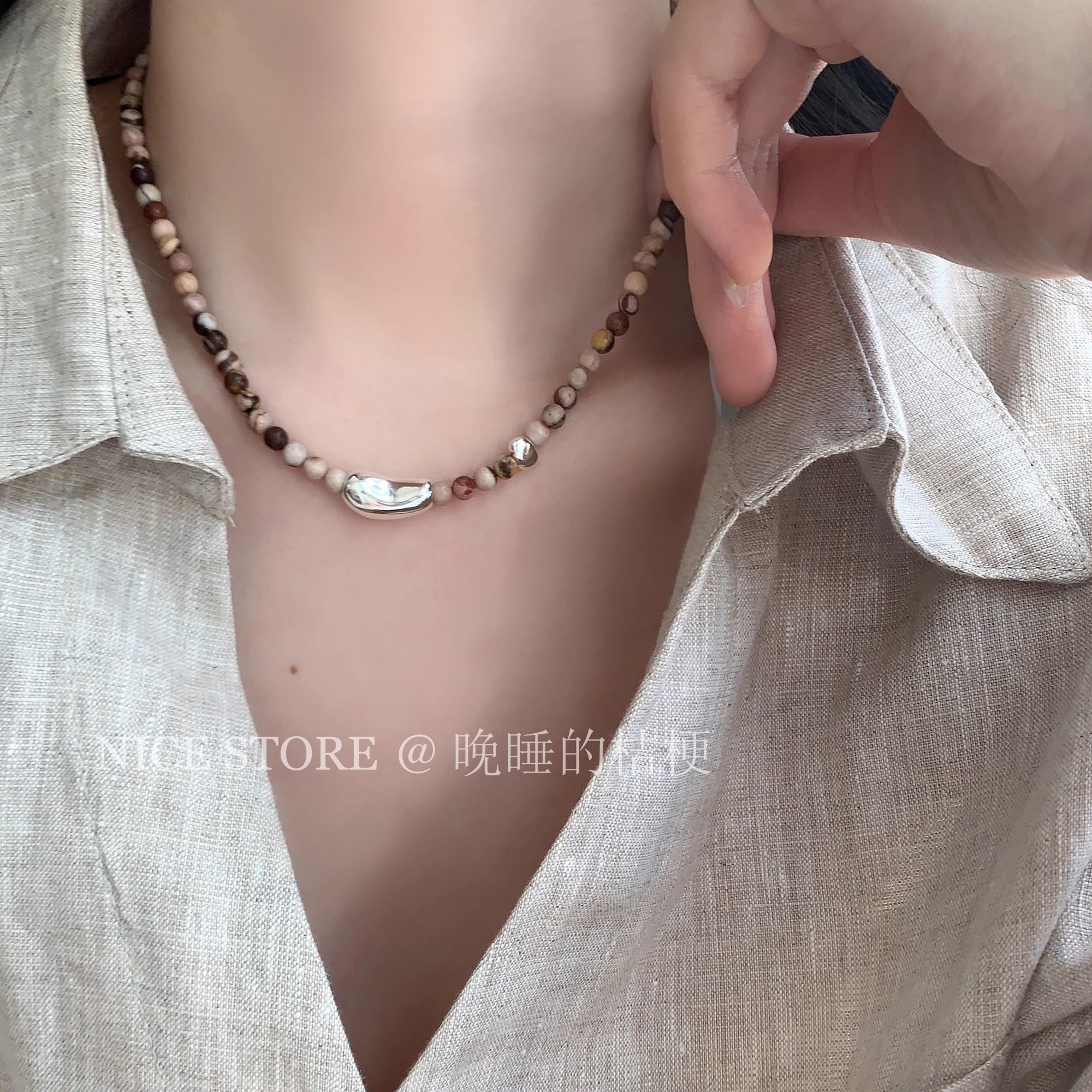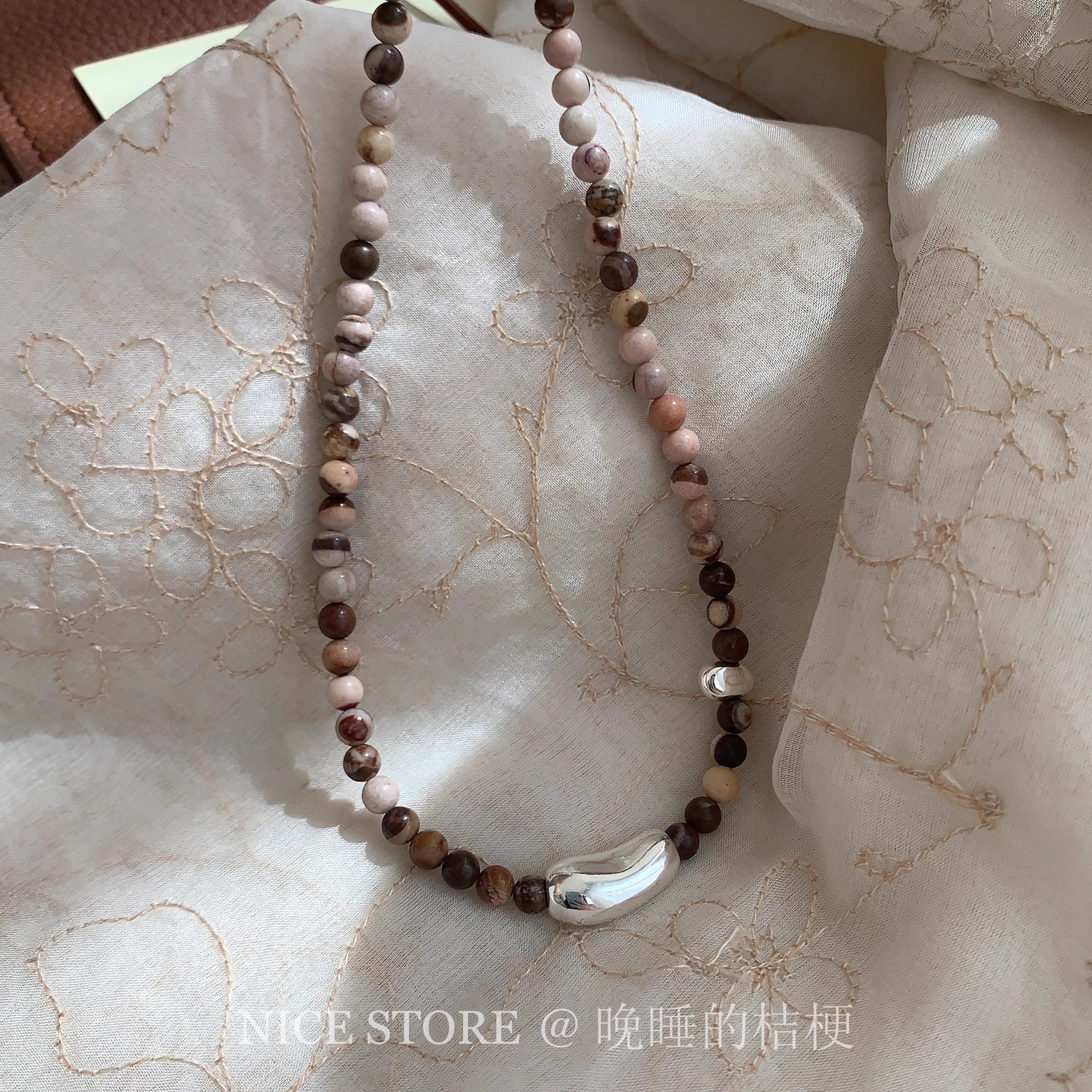 晚睡的桔梗「沙丘」复古不规则澳洲斑马石豌豆项链串珠小众锁骨链