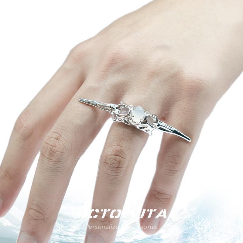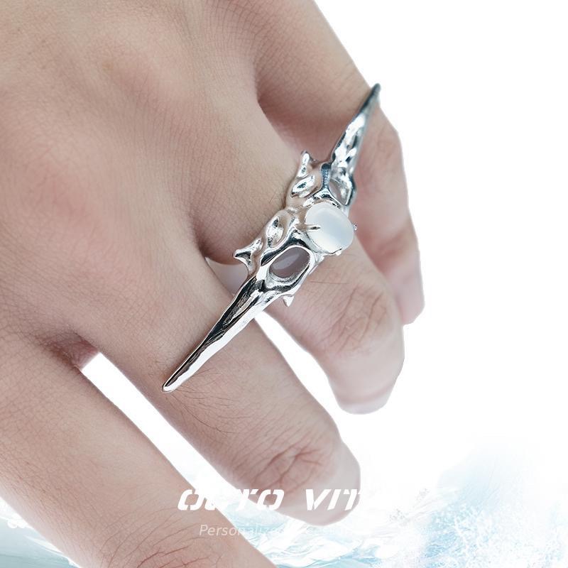 原创白玉色双圈戒指 龙骨暗黑夸张设计感配饰高级冷淡风