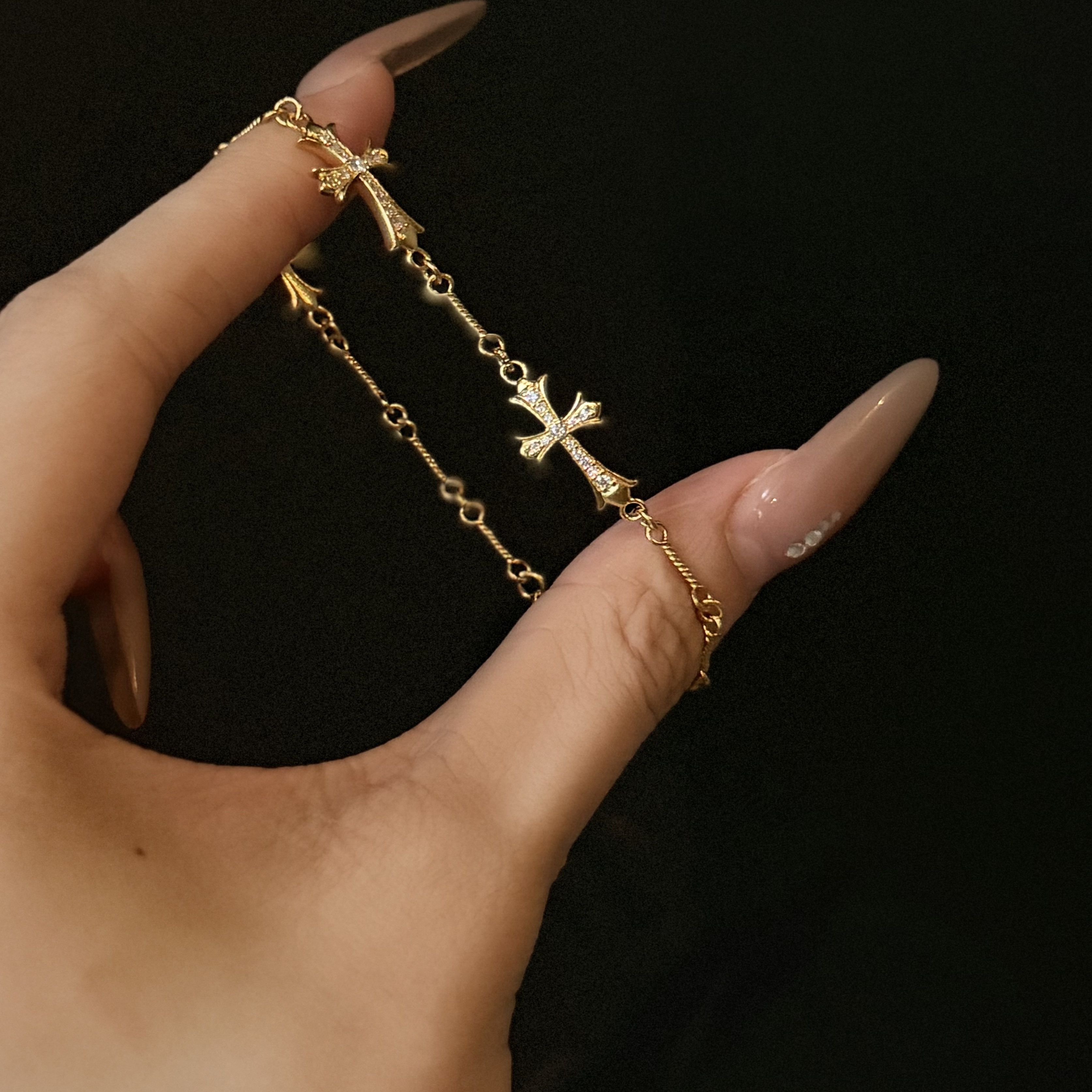 古法5D手串足金999水贝黄金克罗心手链3新款2025送礼送女友