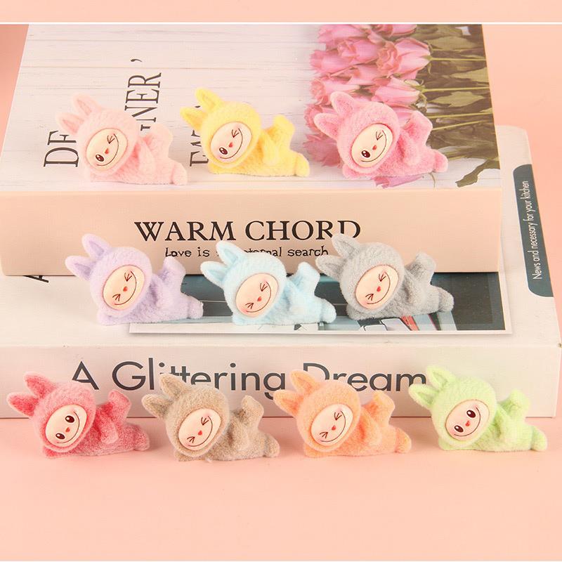 侧躺植绒拉布玩偶瑜伽萌粒模型公仔桌面车载中控台摆件工位装饰