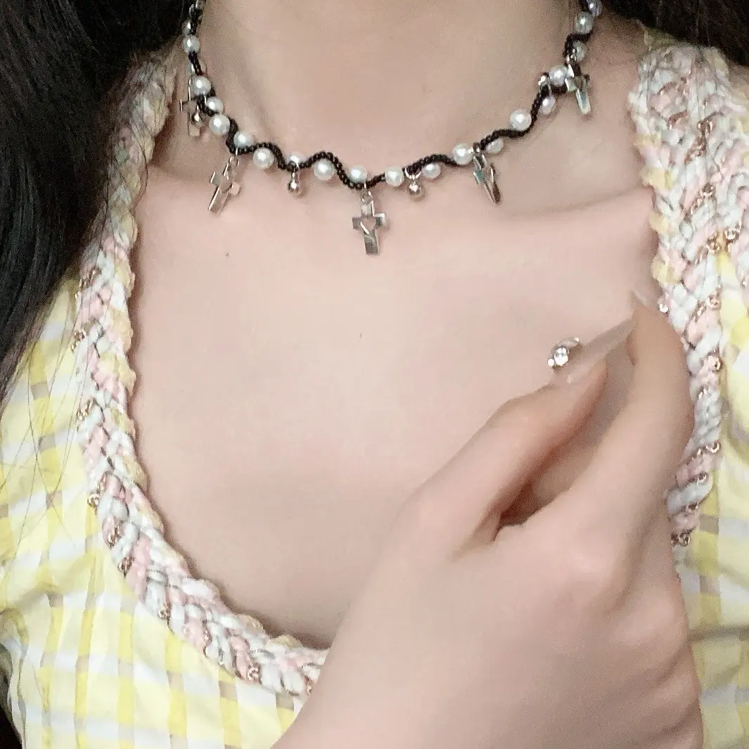 镶钻几何撞色串珠项链个性小众简约气质夸张锁骨链高级感时尚项饰