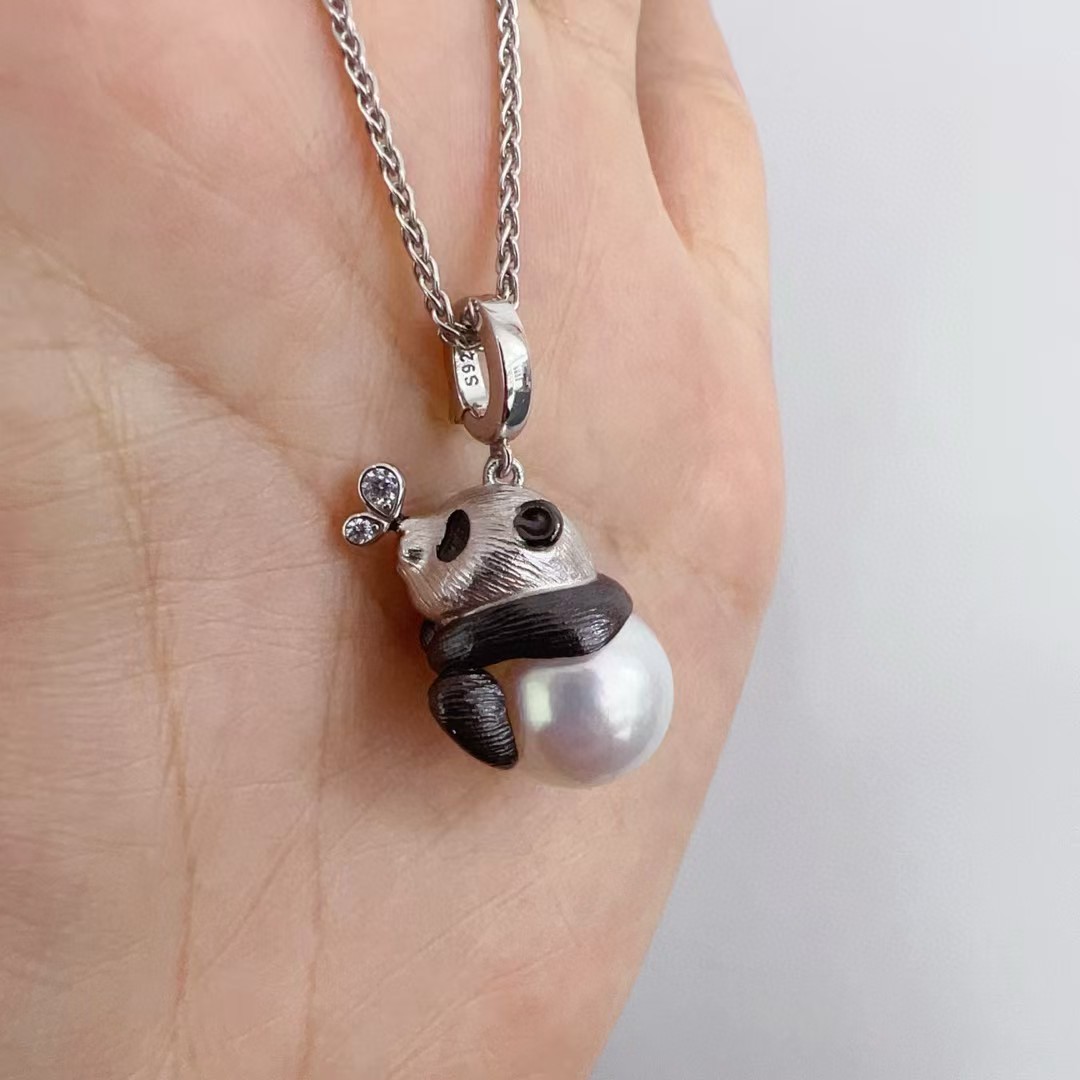 一物一证,熊猫花花,s925银镶10-11mm天然淡水珍珠