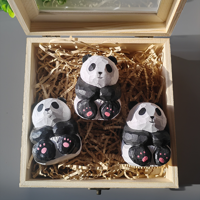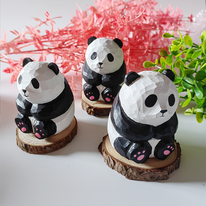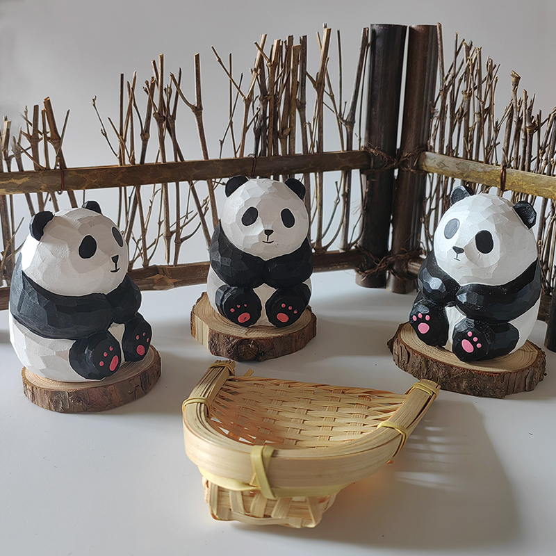 熊猫木雕纯手工实木雕刻朋友日常送礼高档简约客厅办公室桌面摆件