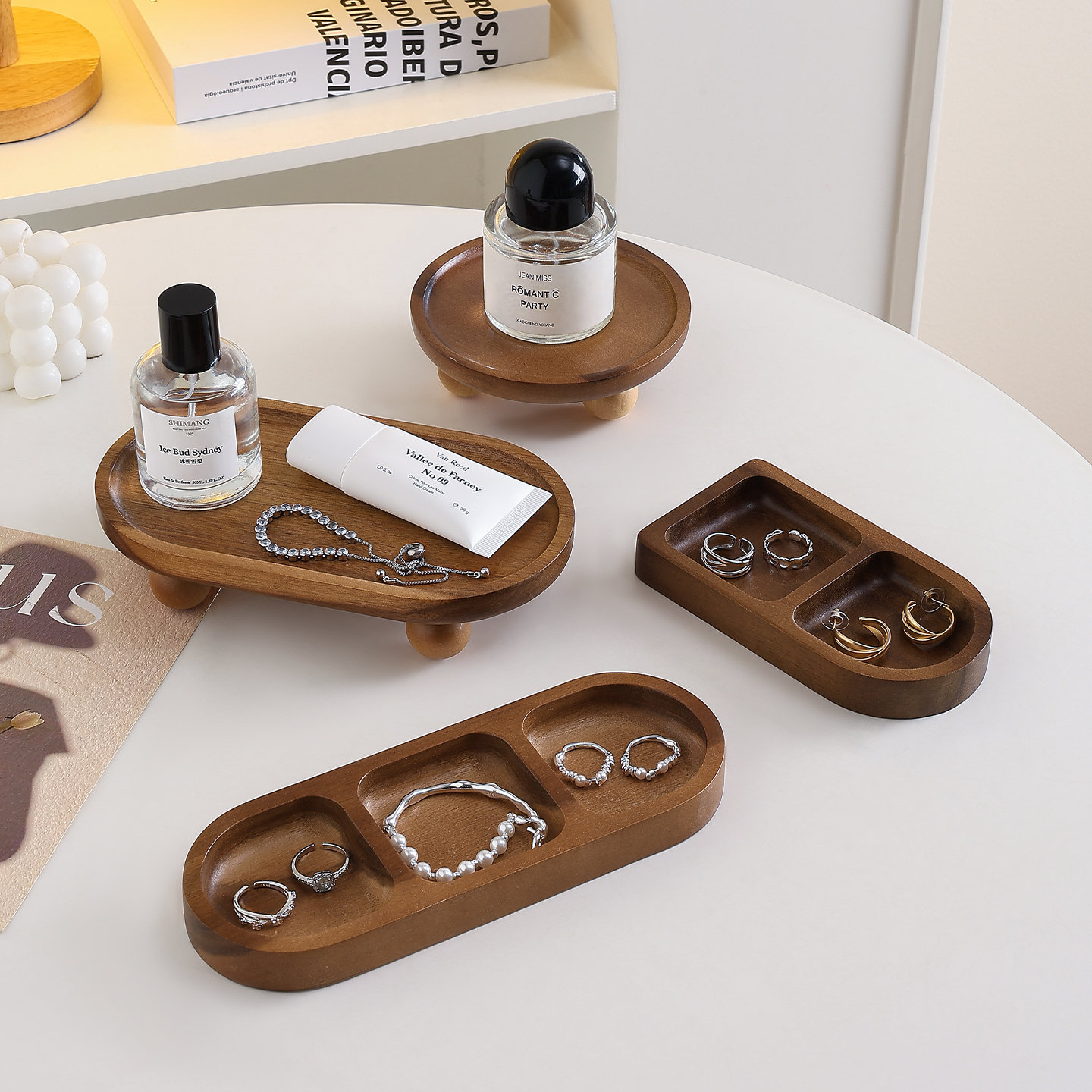 中古风实木首饰托盘香薰香水置物架化妆台饰品盘玄关钥匙收纳摆件