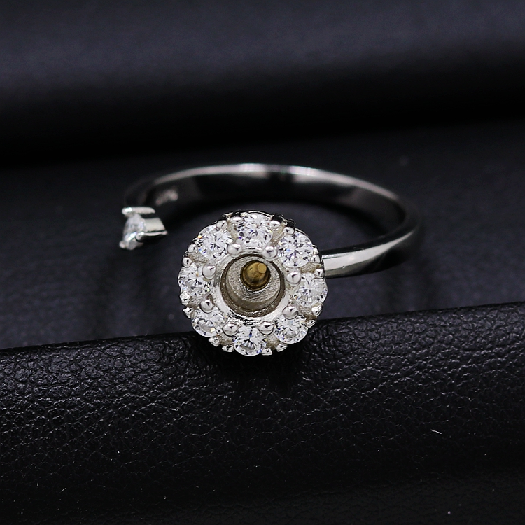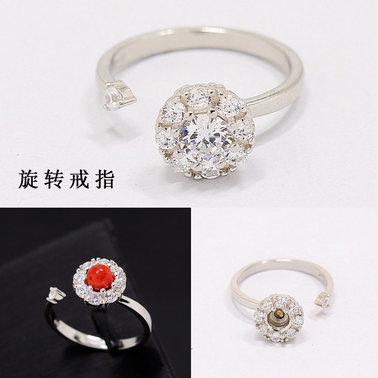 S925纯银旋转戒指时尚女款时来运转戒指空托DIY松石玉石镶嵌托5*5