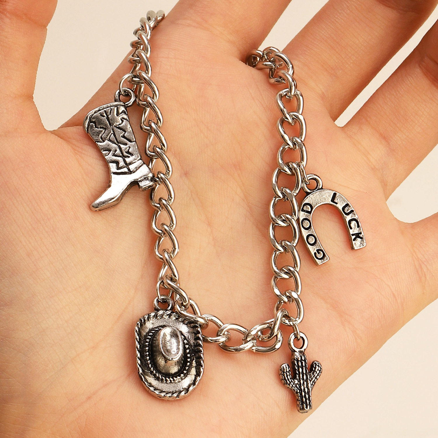 西部牛仔手链项链多层配饰靴子女波西米亚民族风做旧牛仔帽手绳