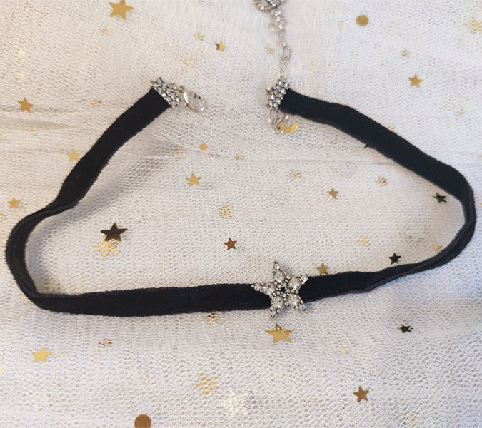 新品D家字母锁骨链织带项链短款水钻五角星复古黑色丝绒颈链包邮