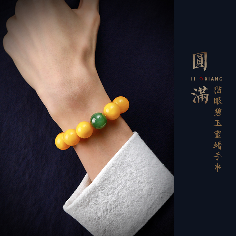收藏级天然老蜜蜡手串男圆珠琥珀鸡油黄满蜜手持佛珠念珠碧玉手链