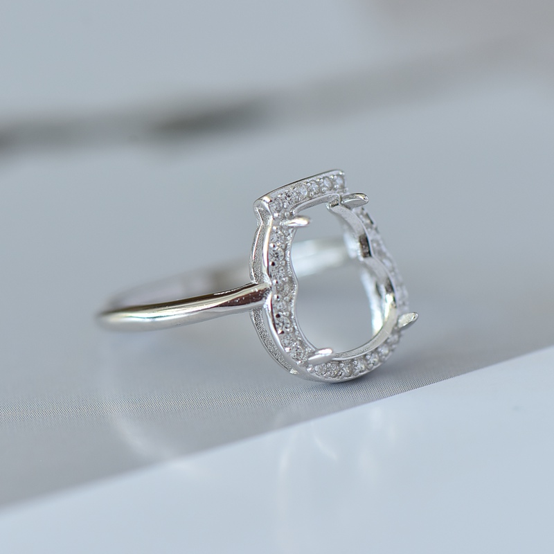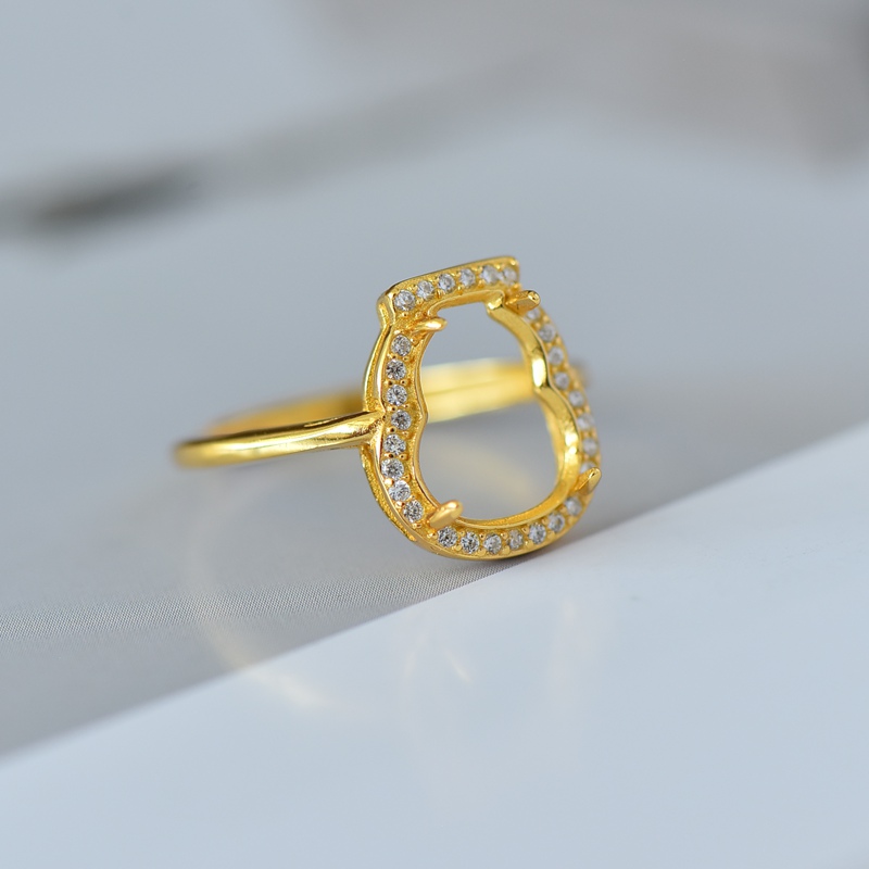 S925纯银戒指空托时尚女满钻葫芦戒面8.5*11DIY玉石松石翡翠镶嵌