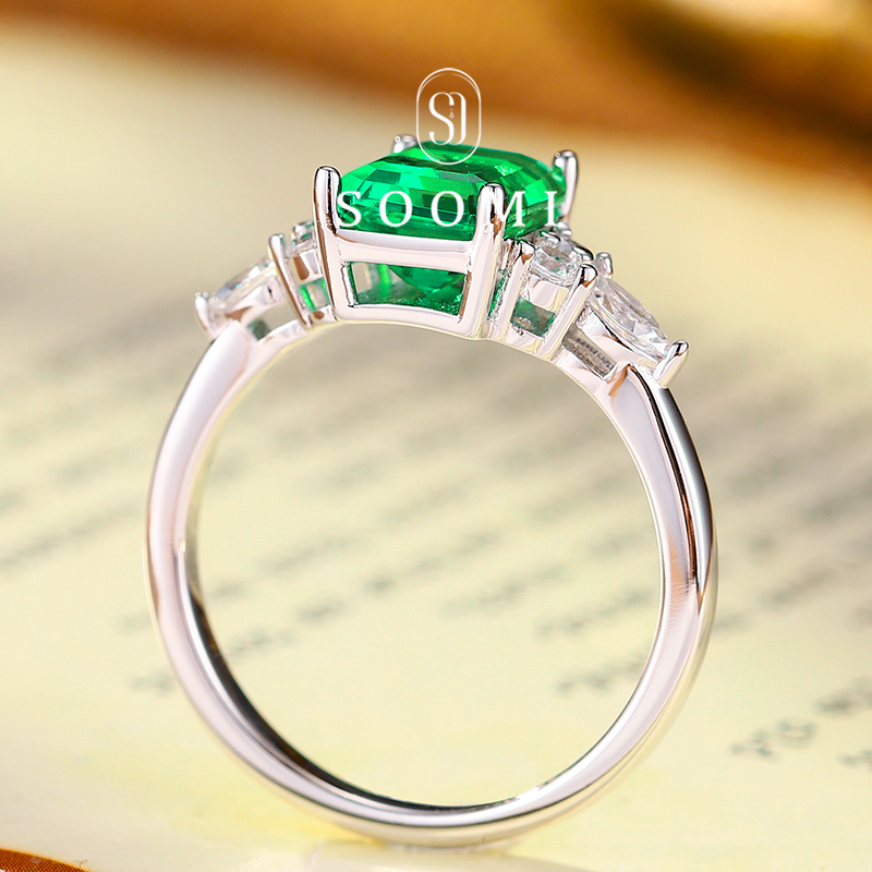 【新品 凝露】祖母绿戒指1.5ct培育彩宝木佐色925银简约轻奢女戒
