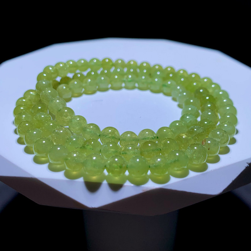 天然沙弗莱石榴石手链三圈水晶清透款宝石绿色手串饰品一物一图女