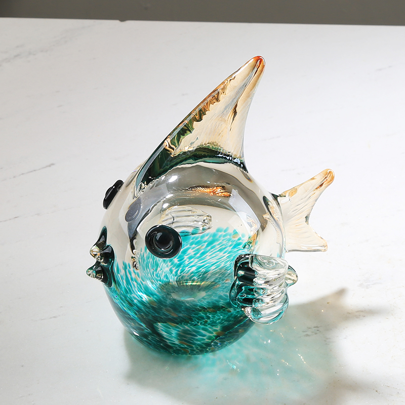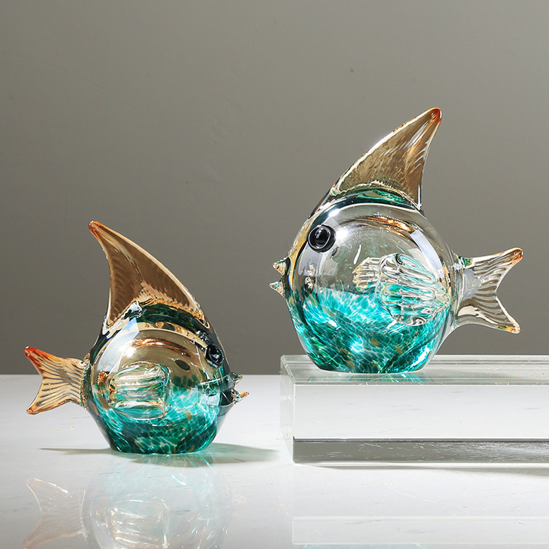 水晶琉璃鱼轻奢摆件简约客厅样板房电视柜卧室玄关玻璃装饰品摆设