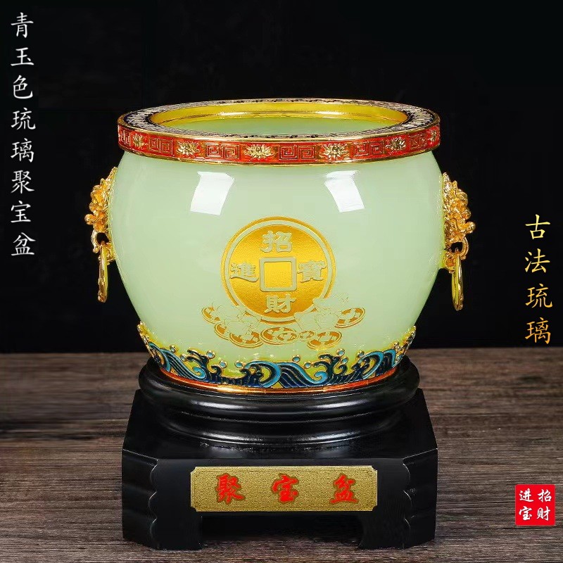 聚宝盆摆件招财客厅玄关办公室摆件琉璃工艺品店铺开业礼品