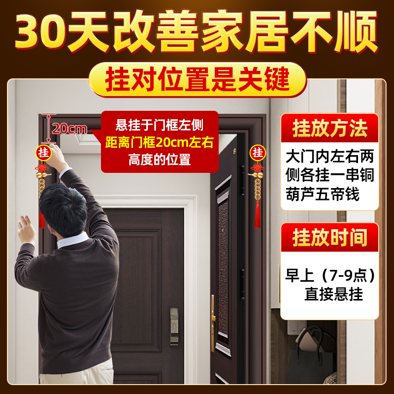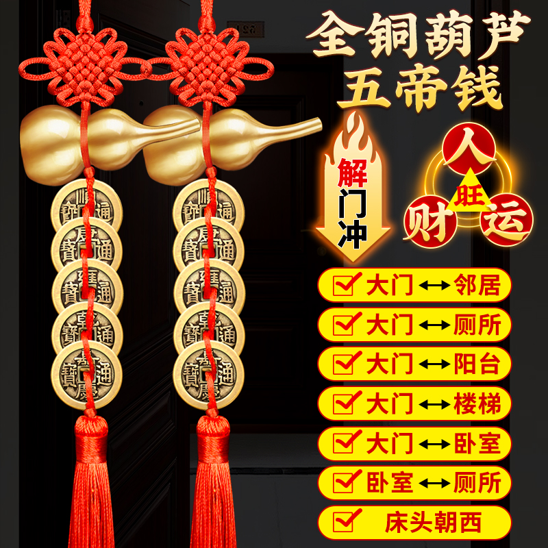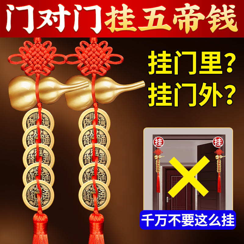 五帝钱门对门葫芦挂件纯铜化天然开口真品铜钱解入户门吉祥摆件