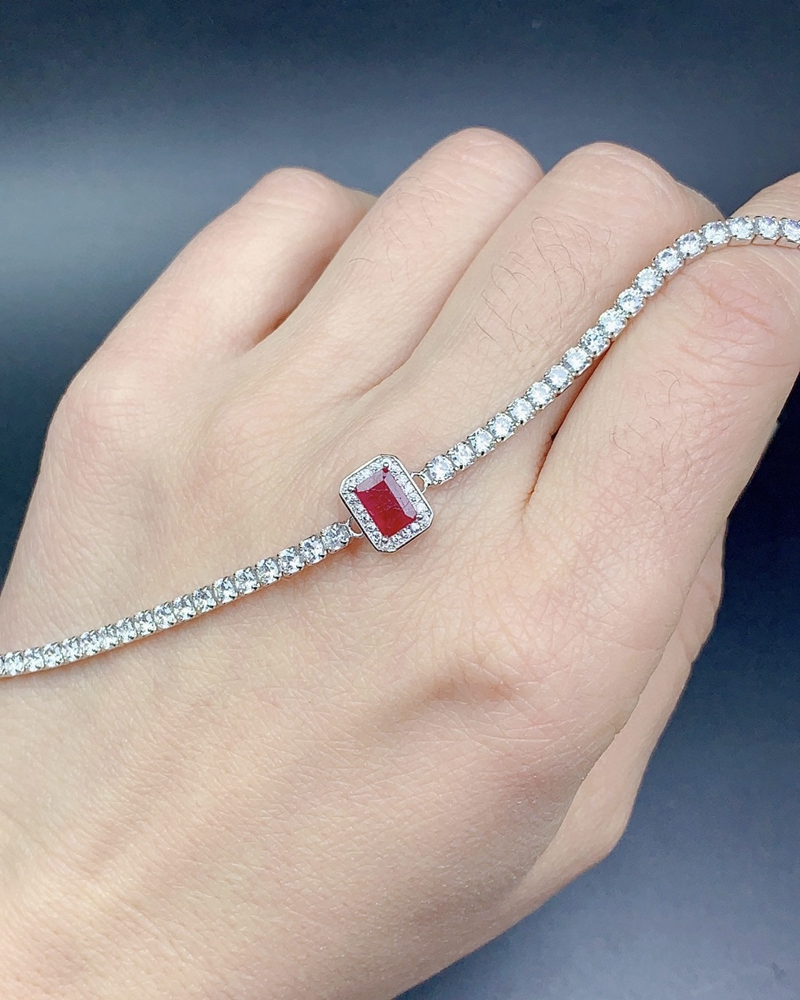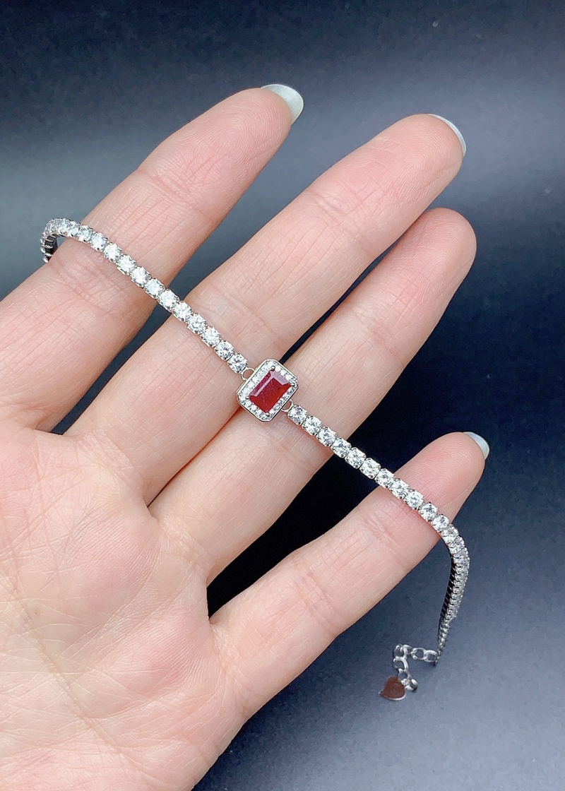新S925纯银长方形手链银空托尺寸4*6mm可镶红蓝宝等钻石手链 配件