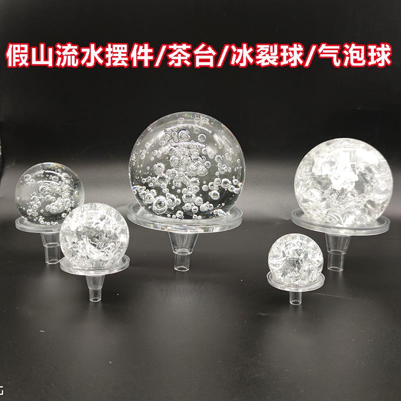 新品风水球假山流水喷泉鱼缸盆景摆件风水轮配件玻璃球水晶球冰裂