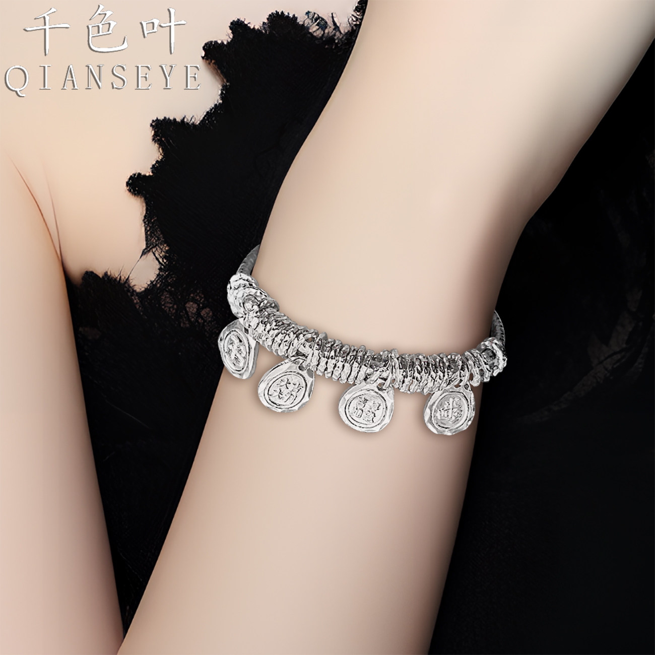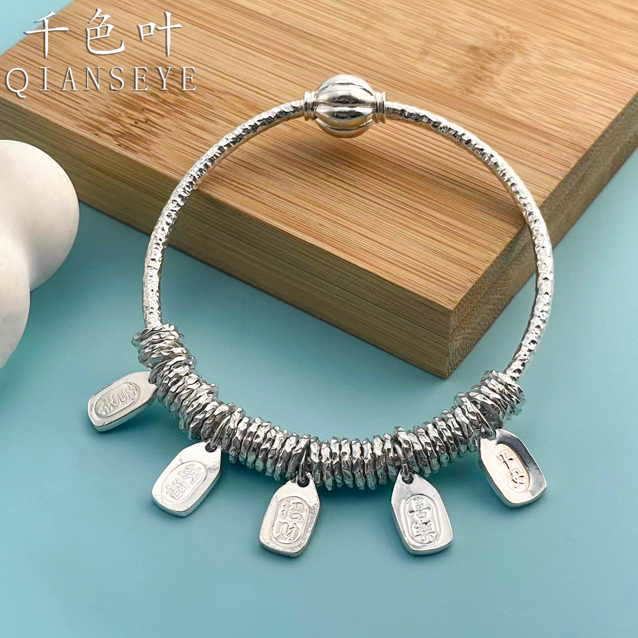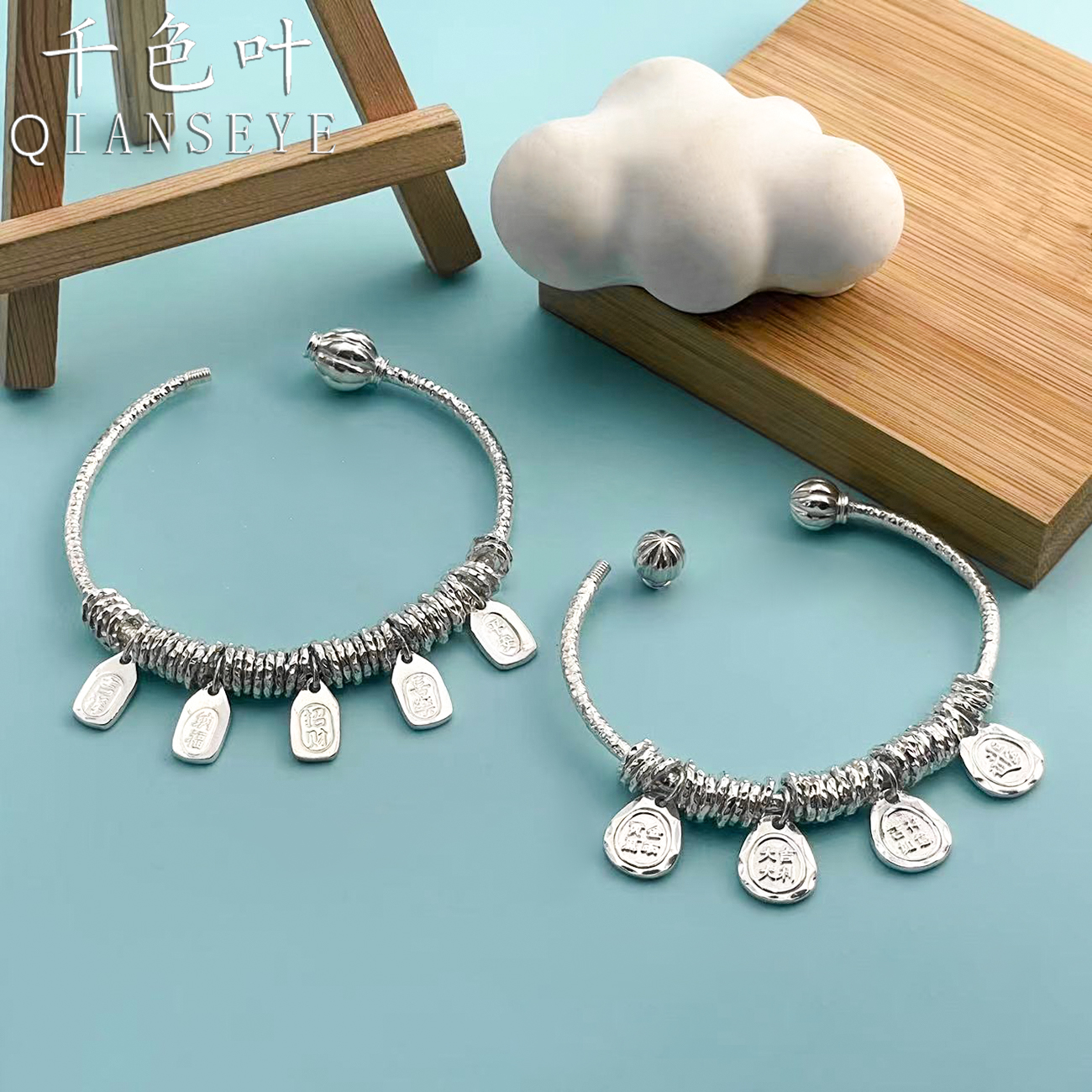 999足银盘缠纯手工捶打手镯南瓜珠扣头可拧开自己DIY更换盘缠配件