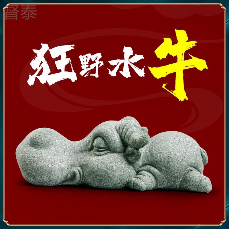 青砂石草原动物茶宠摆件桌面鱼缸造景新中式创意水牛鳄鱼大象河