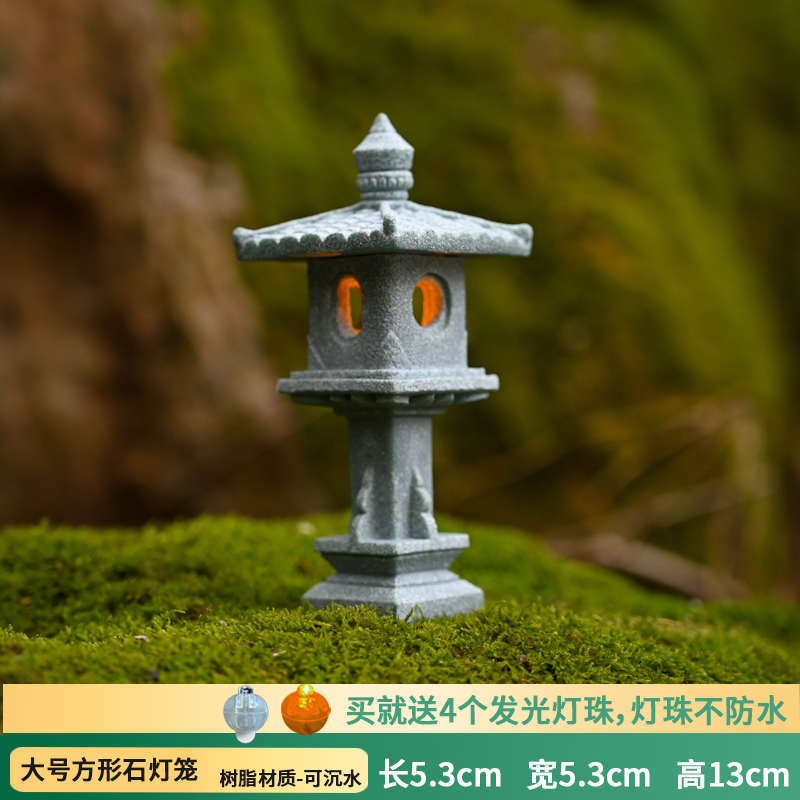盆景假山鱼缸中式小亭子造景装饰品微景观古风发光仿真石灯笼摆件