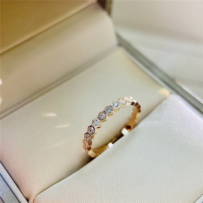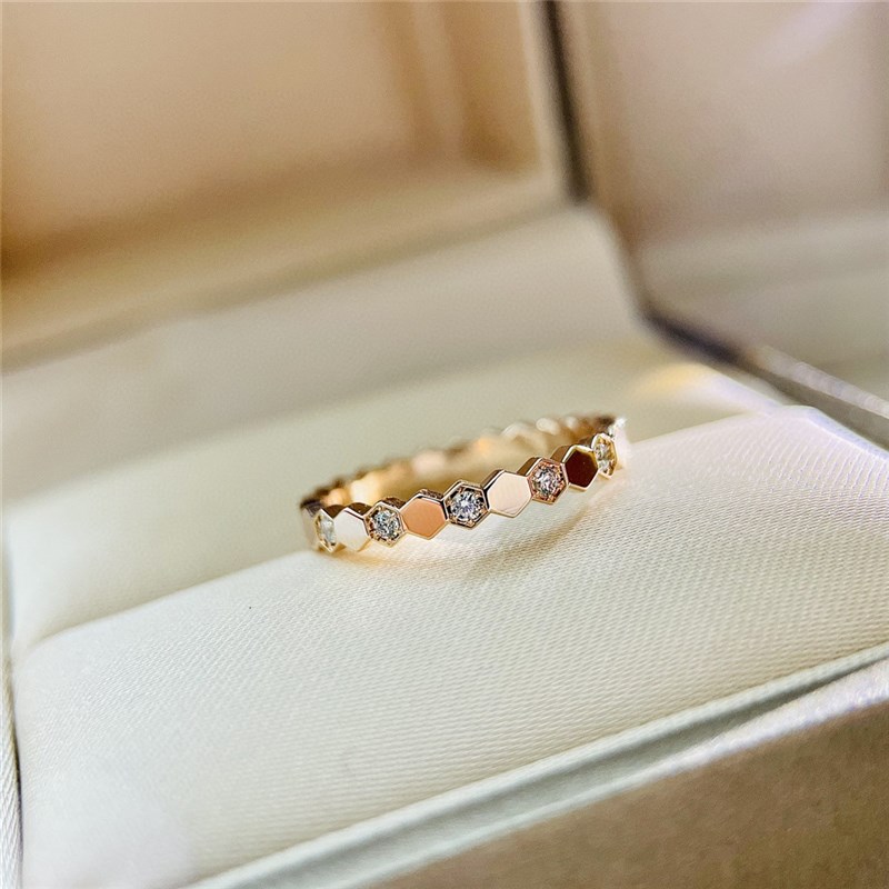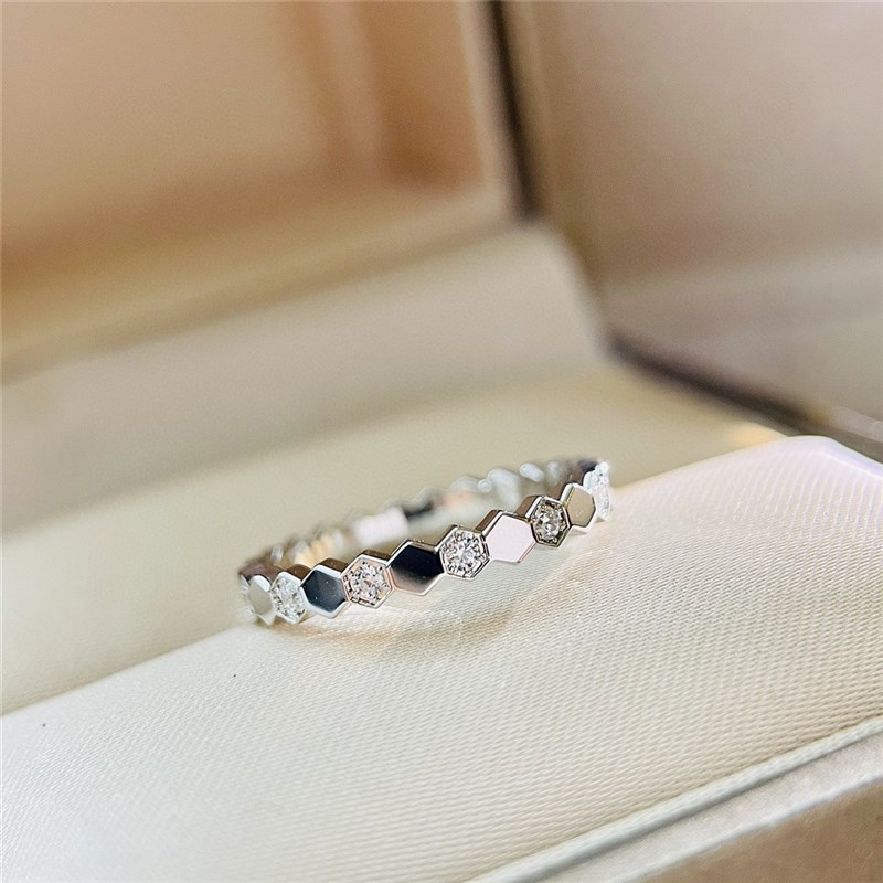 蜂窝戒指cnc光面半钻间钻全钻满钻六角形蜂巢戒指925银戒饰男女款