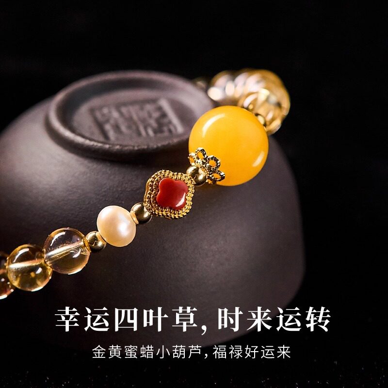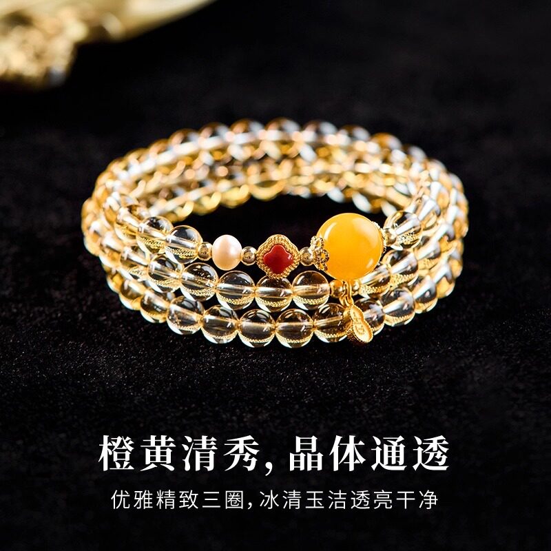 黄水晶手链女天然补土手串黄色蜜蜡南红三圈叠戴送情侣礼