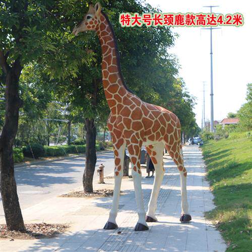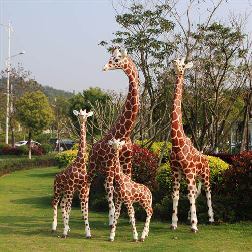 园林景观玻璃钢长颈鹿雕塑户外大型仿真动物摆件公园景区草坪装饰