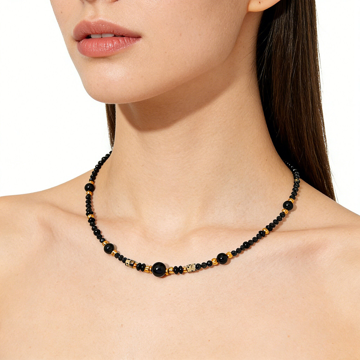 水墨黑色小众串珠项链女新款轻奢高级小众设计感不掉色锁骨链颈链