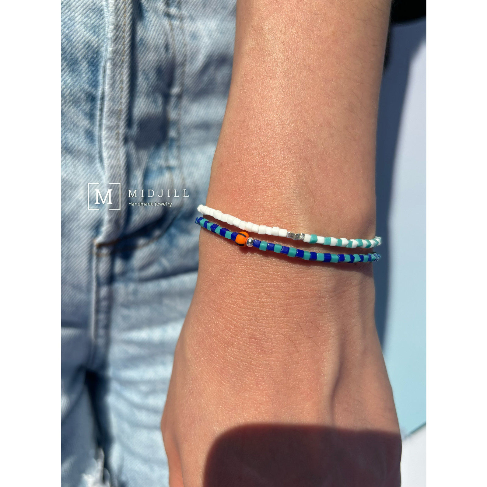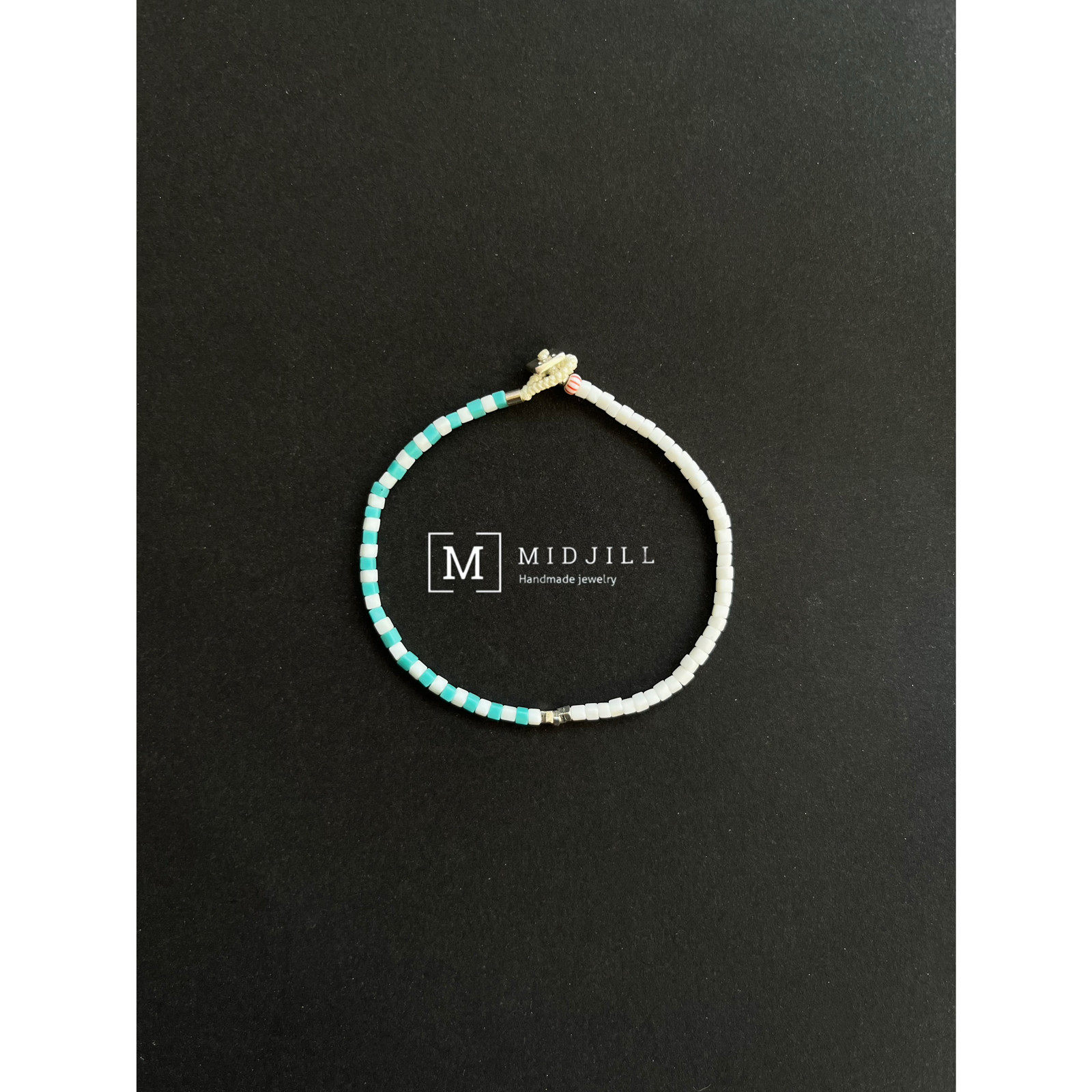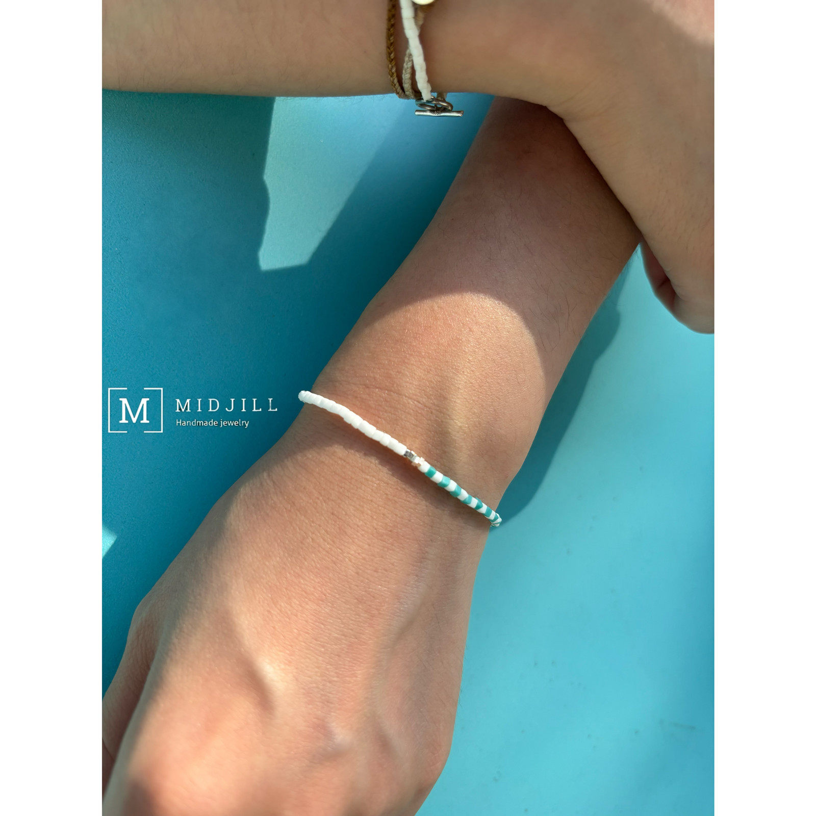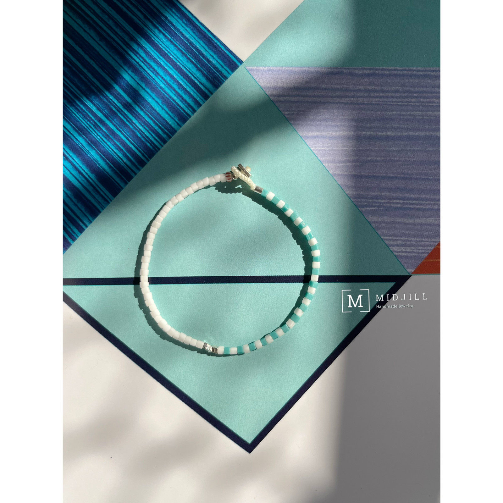 期间限定 时尚简约方形清新白色薄荷色拼接925银手工小众手链新品
