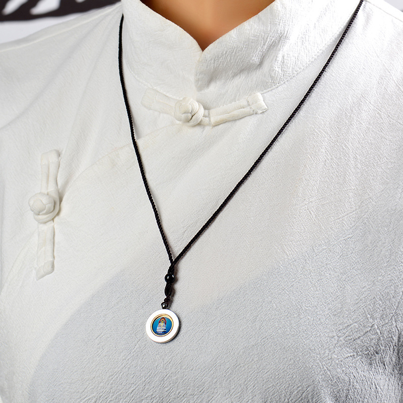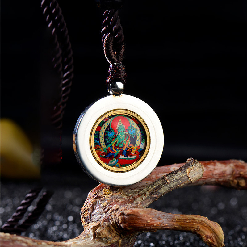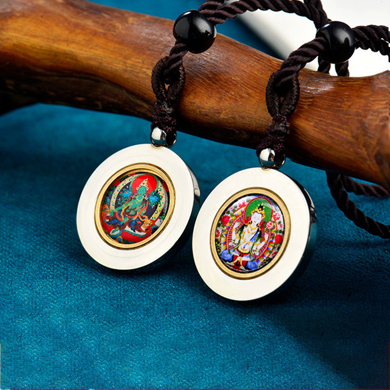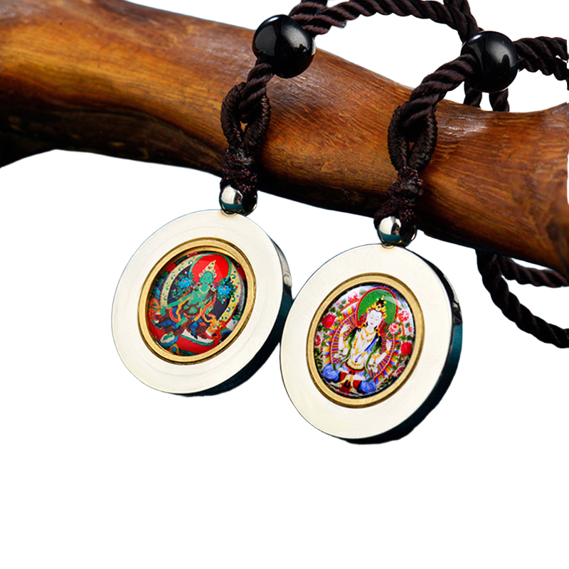 擦擦唐卡钛钢双面小圆吊坠楞严咒药师黄财绿度母可定图心咒贴图项
