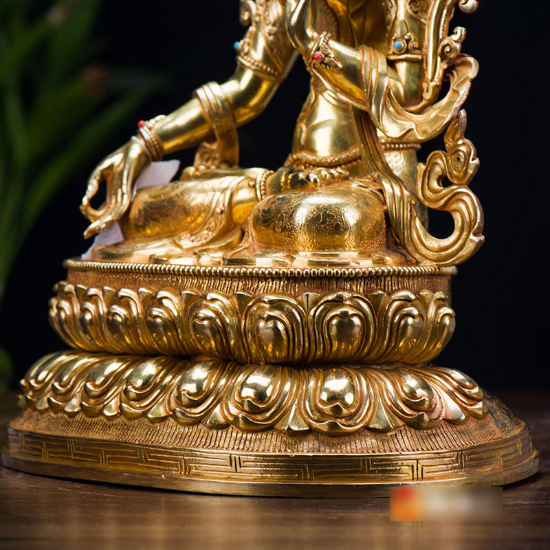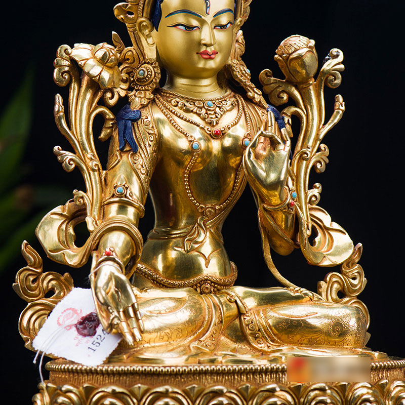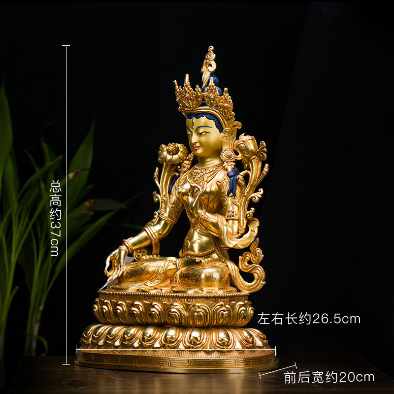 尼泊尔白度母铜像 12寸铜镀金西藏嵌宝石现代雕花室内铜像摆件