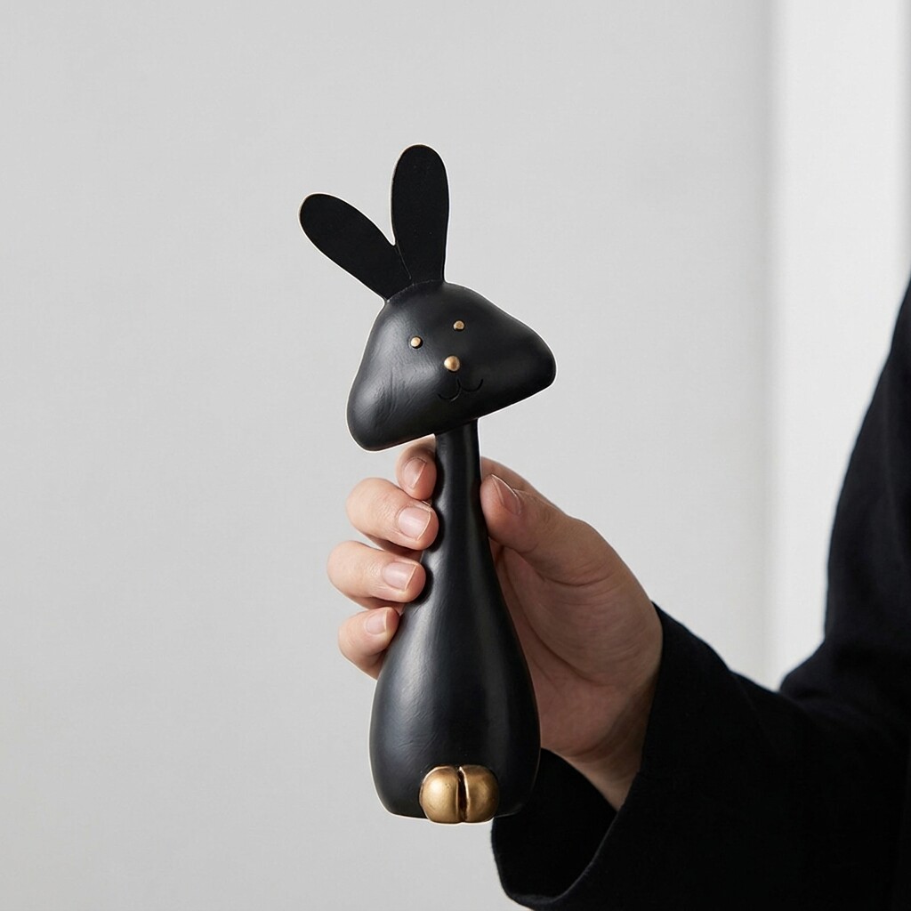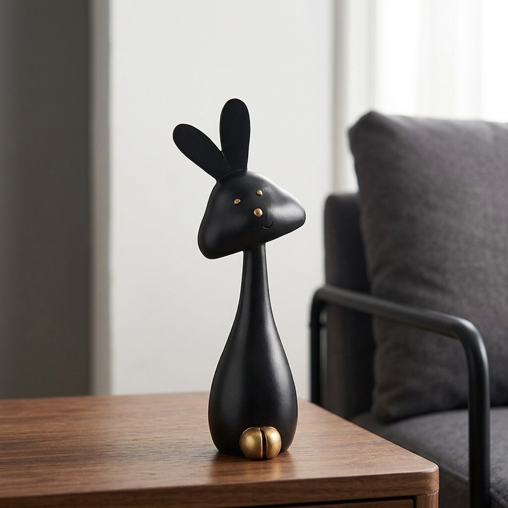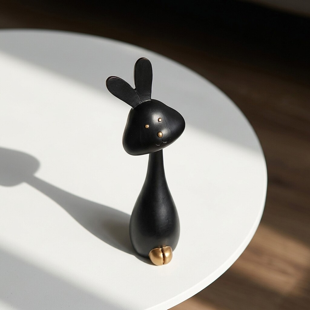 轻奢黑色兔子摆件客厅装饰品创意造型桌面工艺品高级感