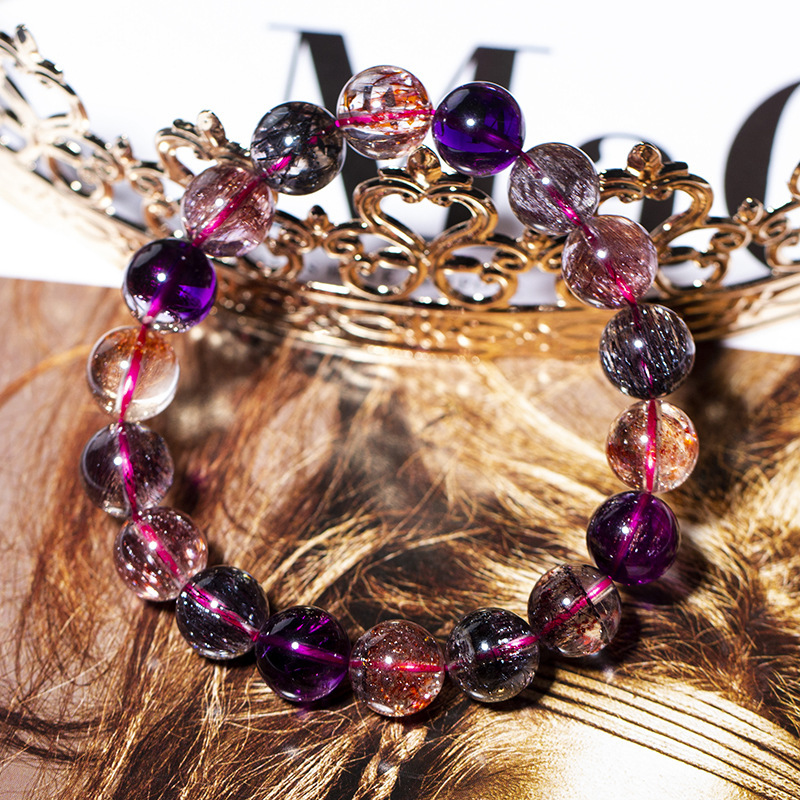 天然超七水晶手链极光23发晶DIY碧玺金草莓紫锂辉红纹石手串百搭