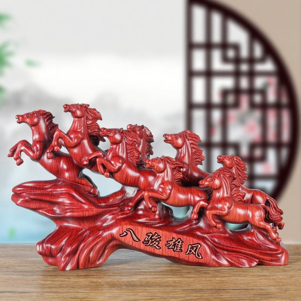 定制木雕马摆件黑檀木八骏雄风红木马实木雕刻工艺品家居摆件礼品