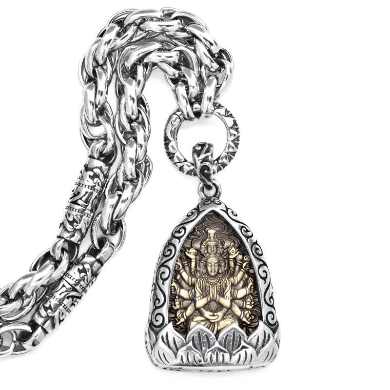 复古守护神佛牌项链男个性霸气潮人本命佛钛钢吊坠嘻哈毛衣链街头