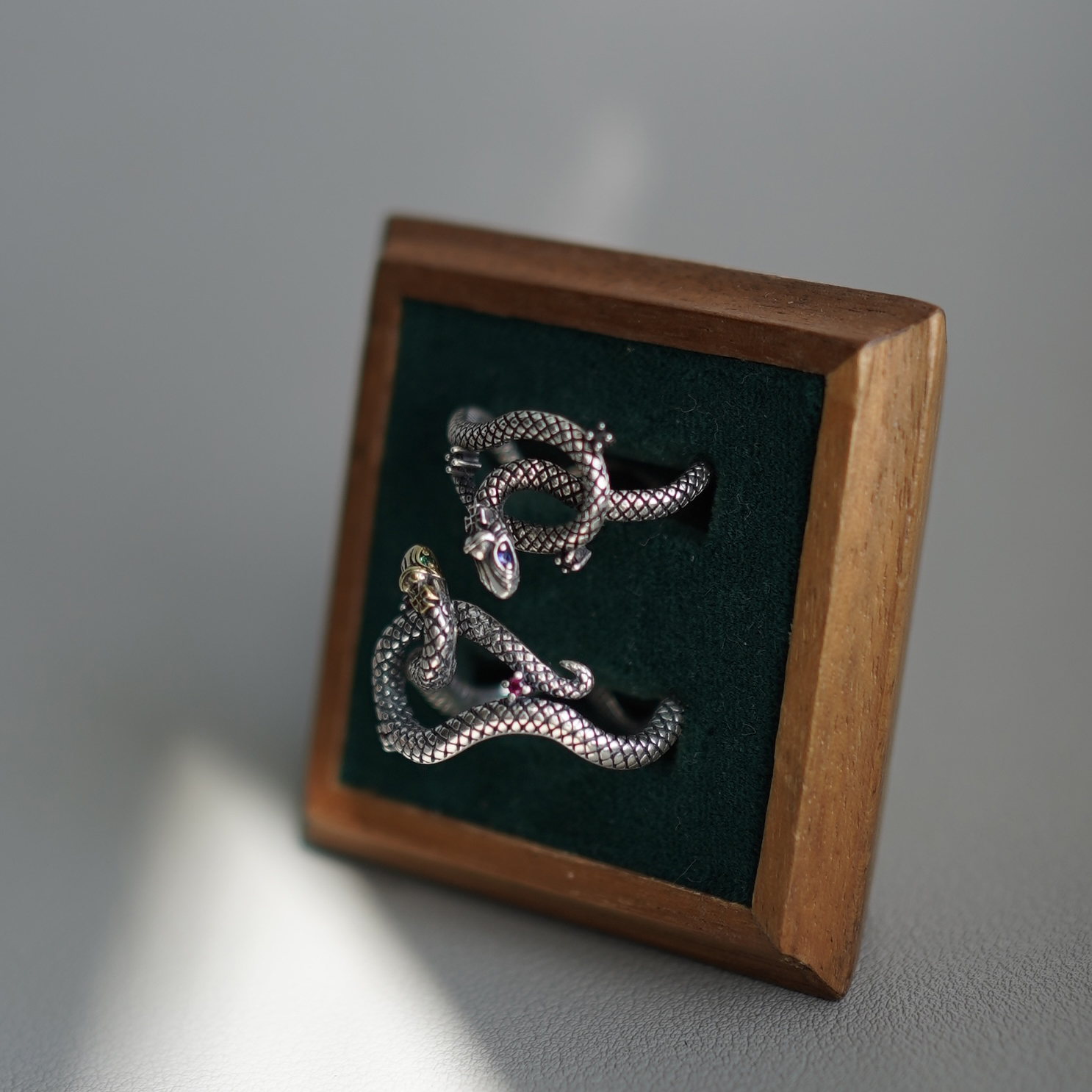 睡莲生生世世 原创设计925纯银细款缠绕蛇元素开口戒指个性指环
