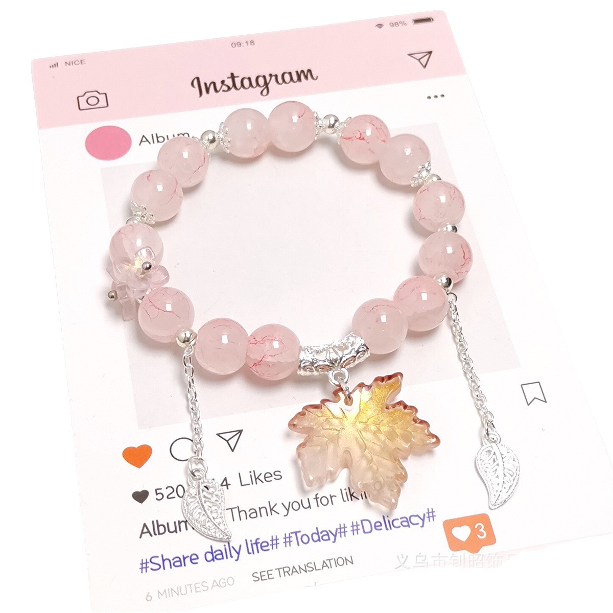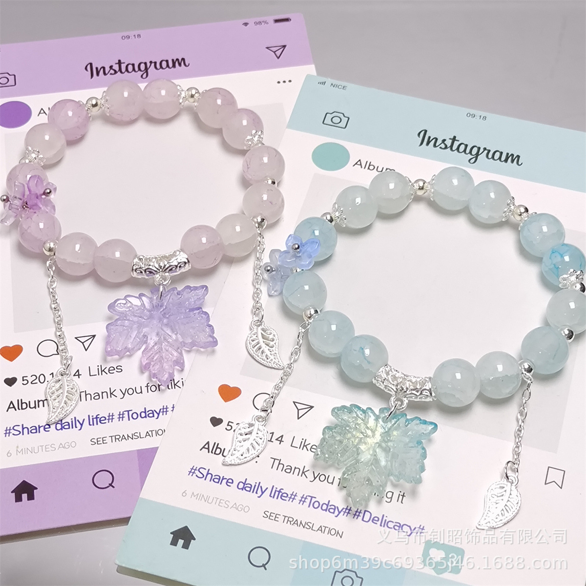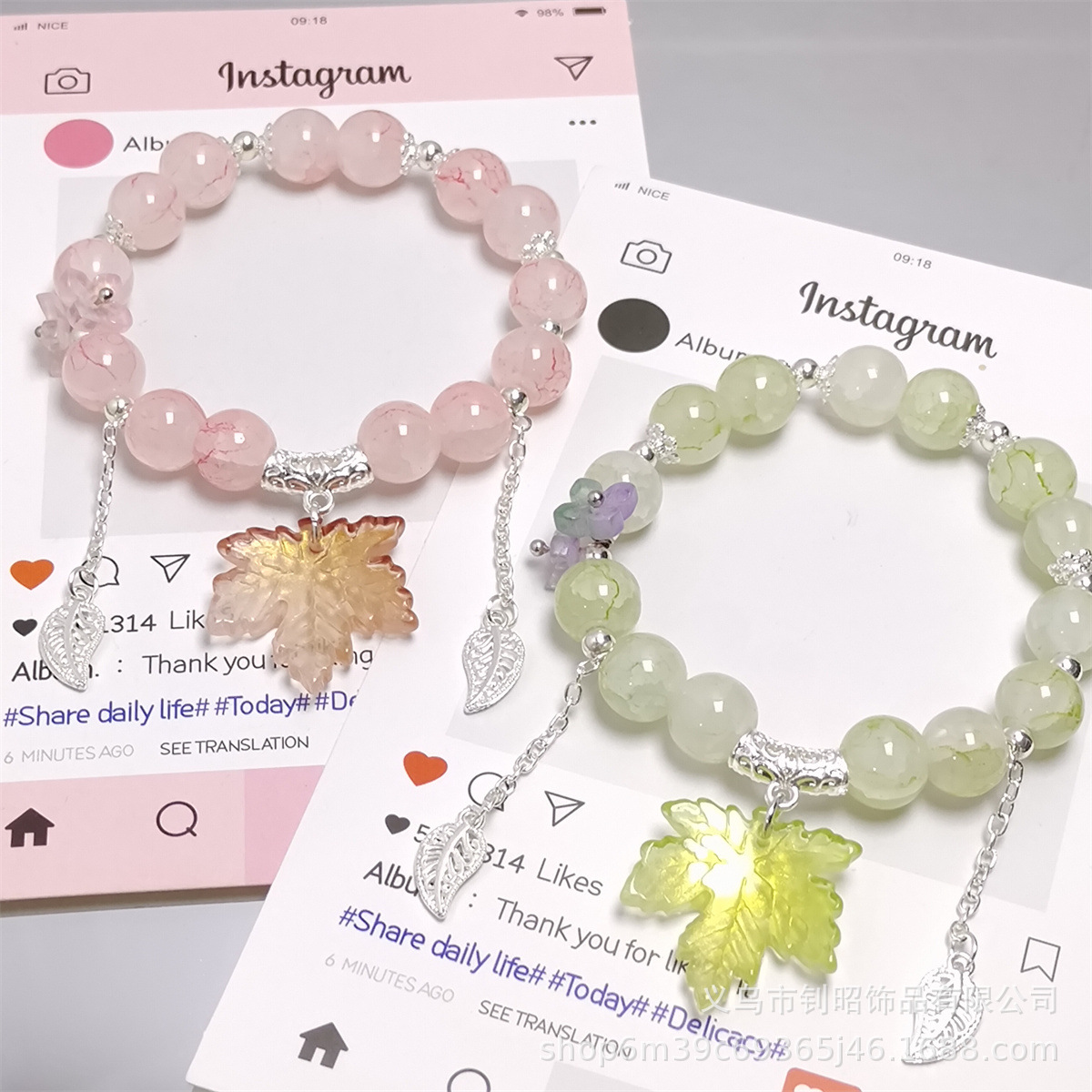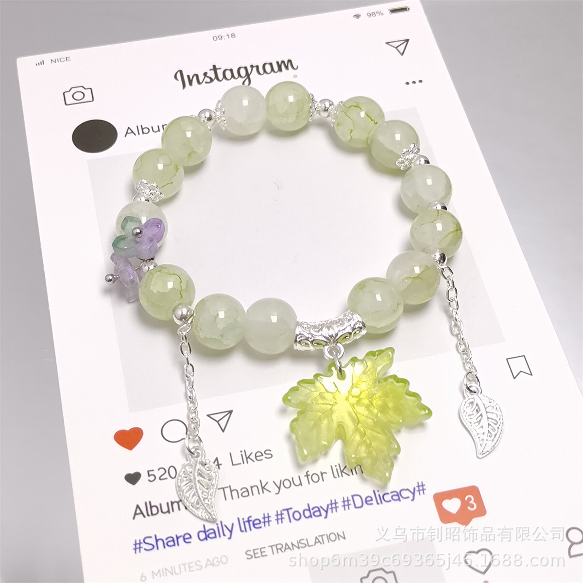 女孩琉璃手链水晶流苏枫叶水墨珠手链女生手链精美百搭学生手串