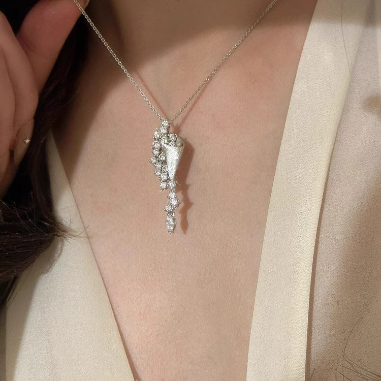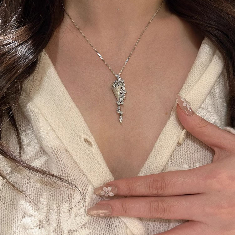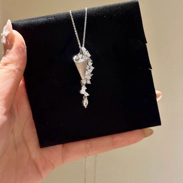 S925纯银中古爆闪满钻水滴项链女新款轻奢小众高级感气质锁骨颈链