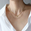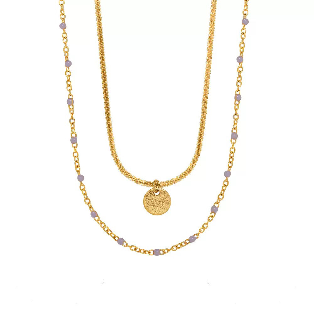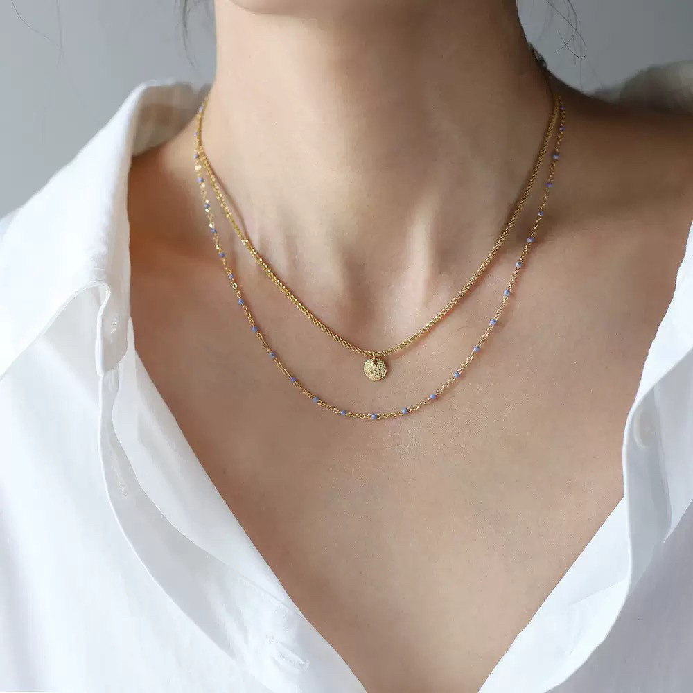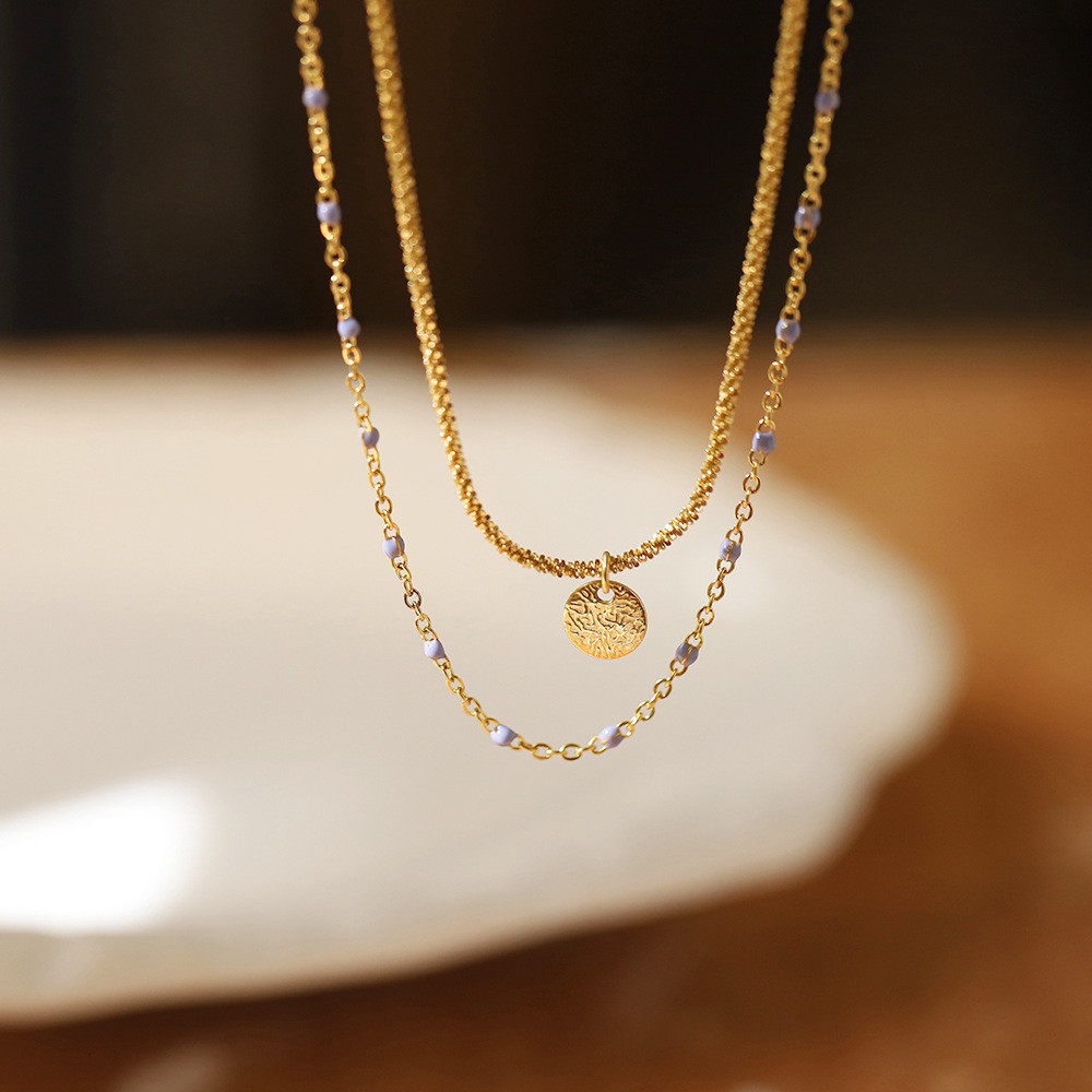 中世纪复古审美彩色项链淡紫色小金牌双层锁骨链夏日有特色不掉色