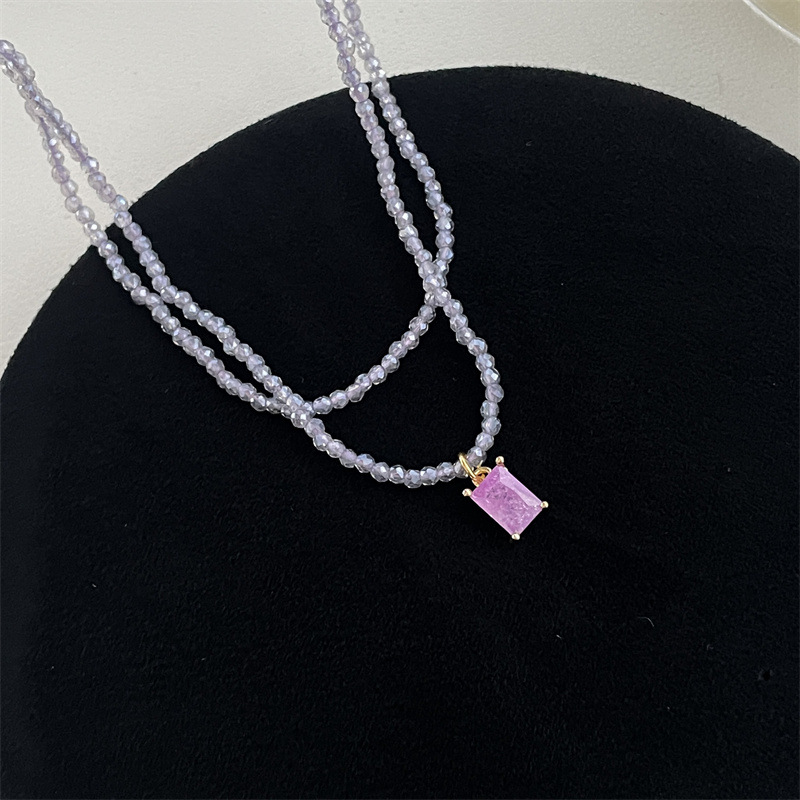 双层缠绕紫色切面水晶方形项链女2025新款锁骨链轻奢小众配饰颈链