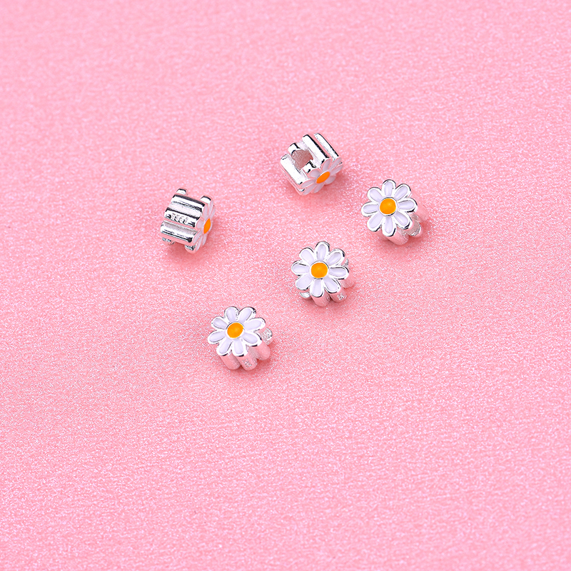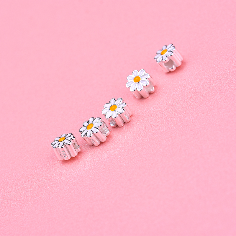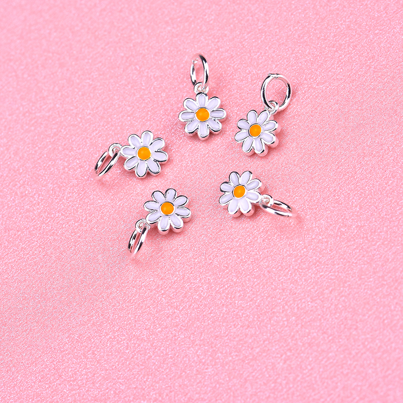 新款S925纯银饰品挂坠配件 滴胶雏菊菊花隔珠吊坠 手链项链配饰