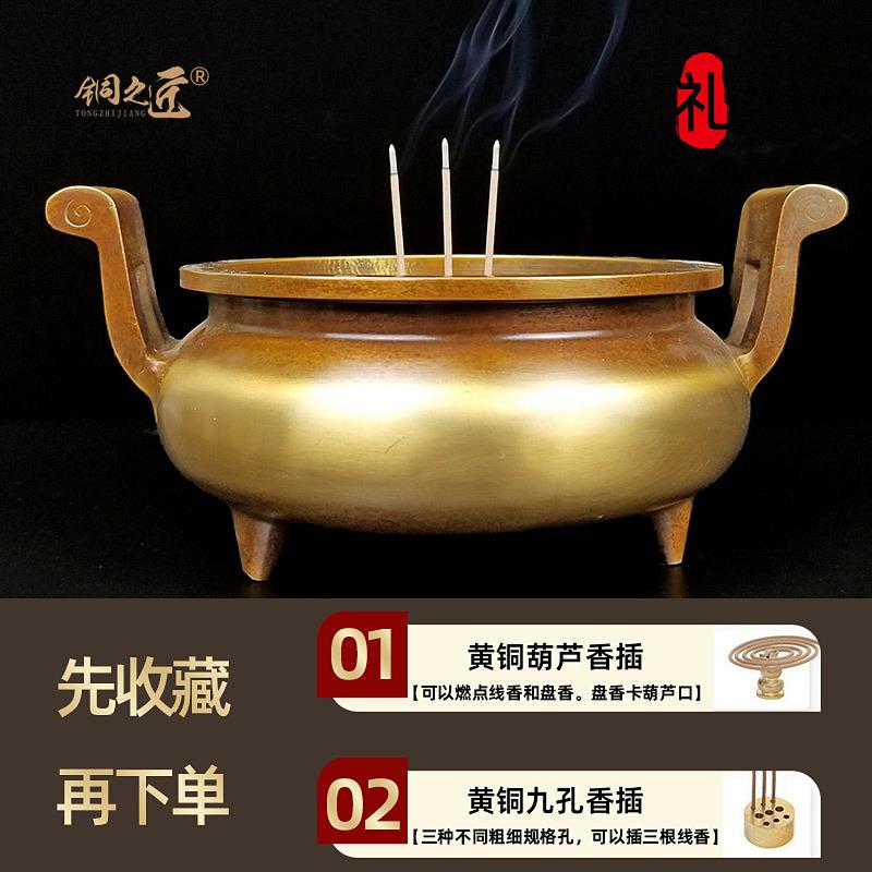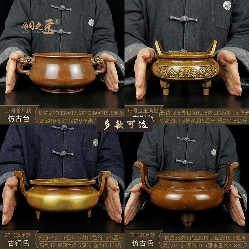 铜香炉黄铜家用室内三足插香上香具用品烧线香炉香插香座宣德鼎炉
