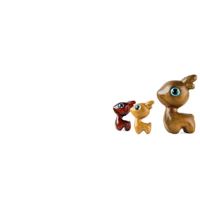 绿檀一鹿木雕小鹿一路实木质手工手把玩件网红一鹿有你