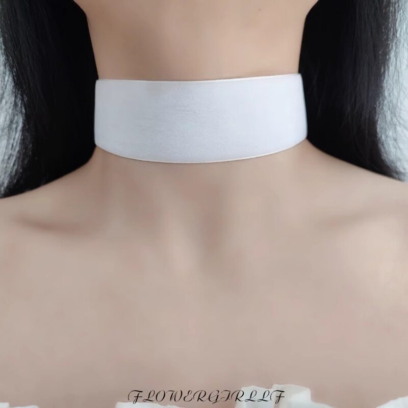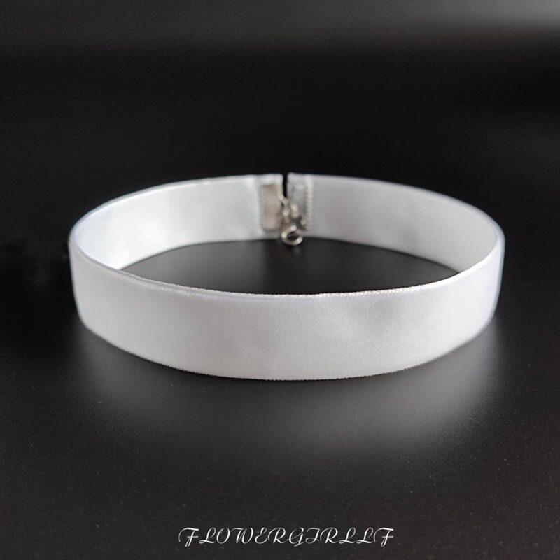 白色绒面choker宽边百搭颈链纯色遮颈纹饰品短款脖子饰品简约颈链