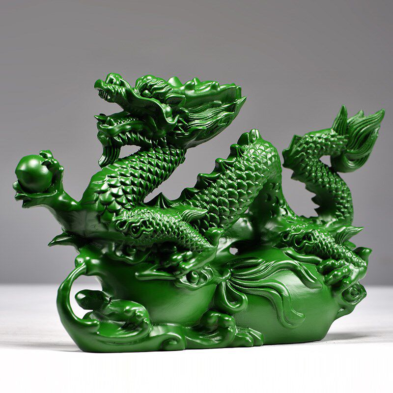 绿色木龙摆件木头龙十二生肖龙工艺品动I物家居送礼实木质雕刻装