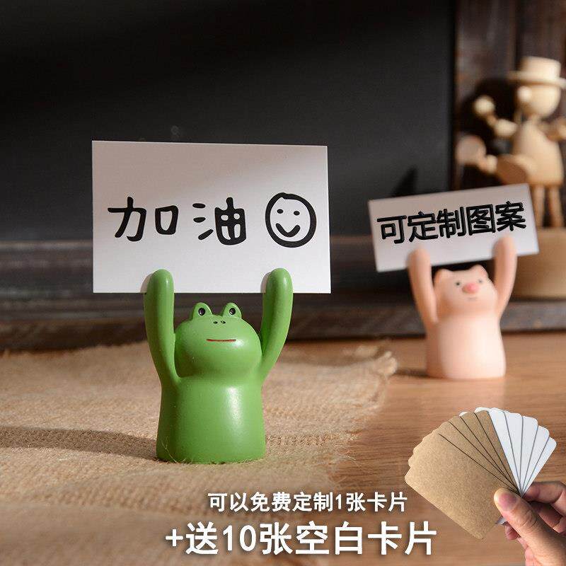 留言夹小动物举手可爱桌面励志装饰摆件定制价格牌名片照片便签夹